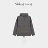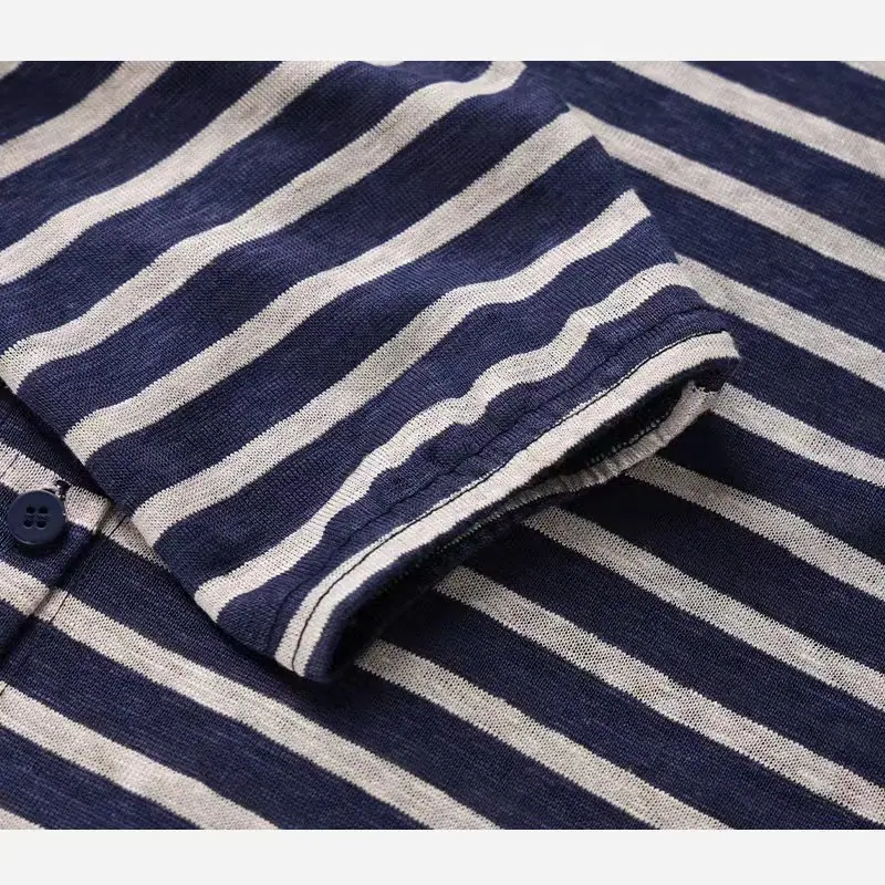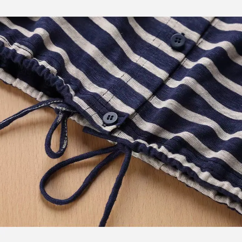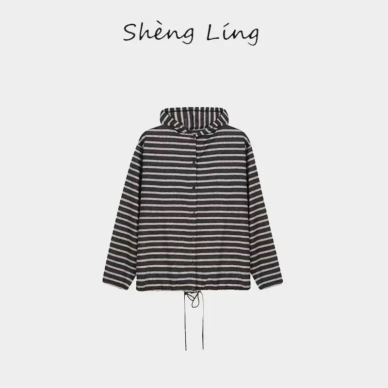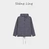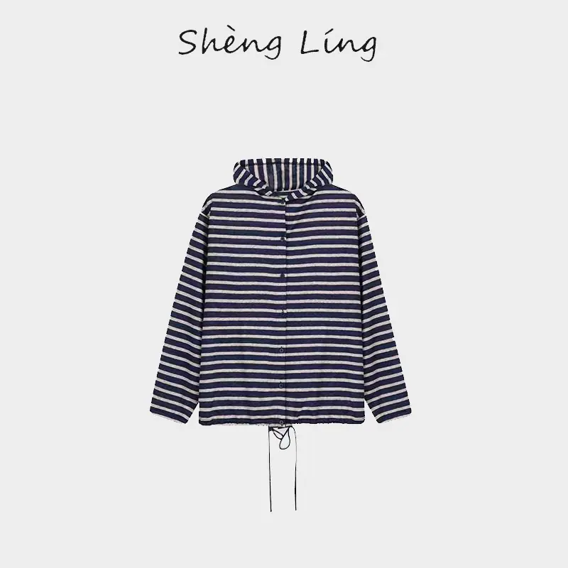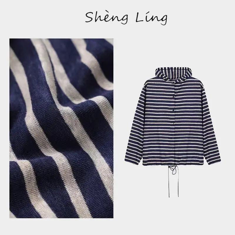Sudadera con capucha de primavera y otoño de punto de cáñamo puro a rayas para mujer, dobladillo con cordón, sentido del diseño, versátil, casual SL50924