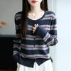 Cárdigan Versátil Retro de Rayas Transfronterizo Nuevo Casual para Mujer, Suéter de Punto de Manga Larga para Mujer Otoño Invierno 2025