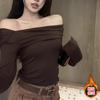 Top Puramente Sensual y Sexy Hombros Descubiertos para Mujer, Nuevo Estilo Coreano Otoño Temprano 2026 Camiseta Corta Ajustada de Manga Larga con Cuello Diagonal