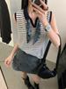 Chaleco de Punto Casual de Moda con Cuello Vuelto para Mujer, Camisa Polo de Verano Nicho a Rayas, Top Retro de Alta Gama sin Mangas, Chaqueta sin Mangas