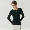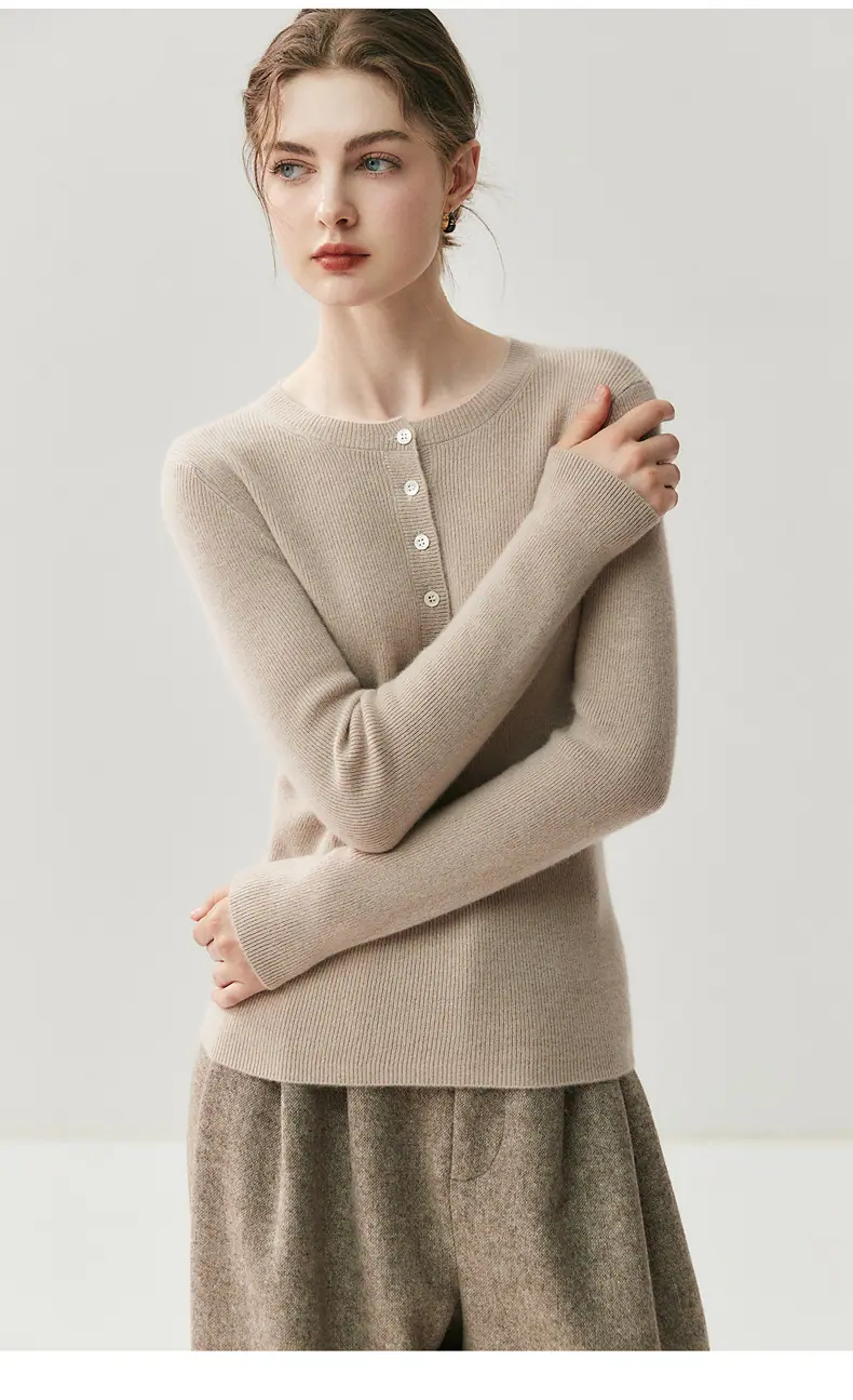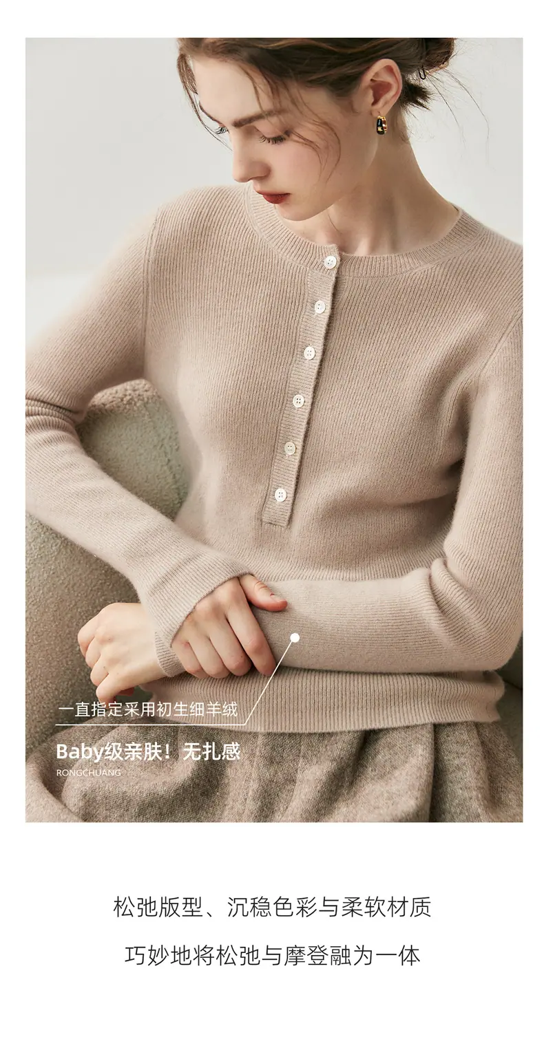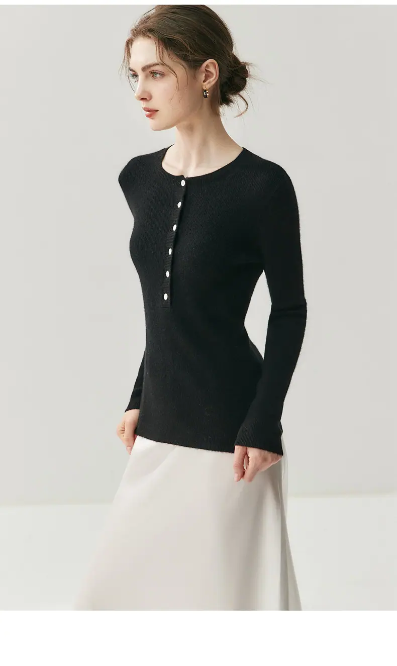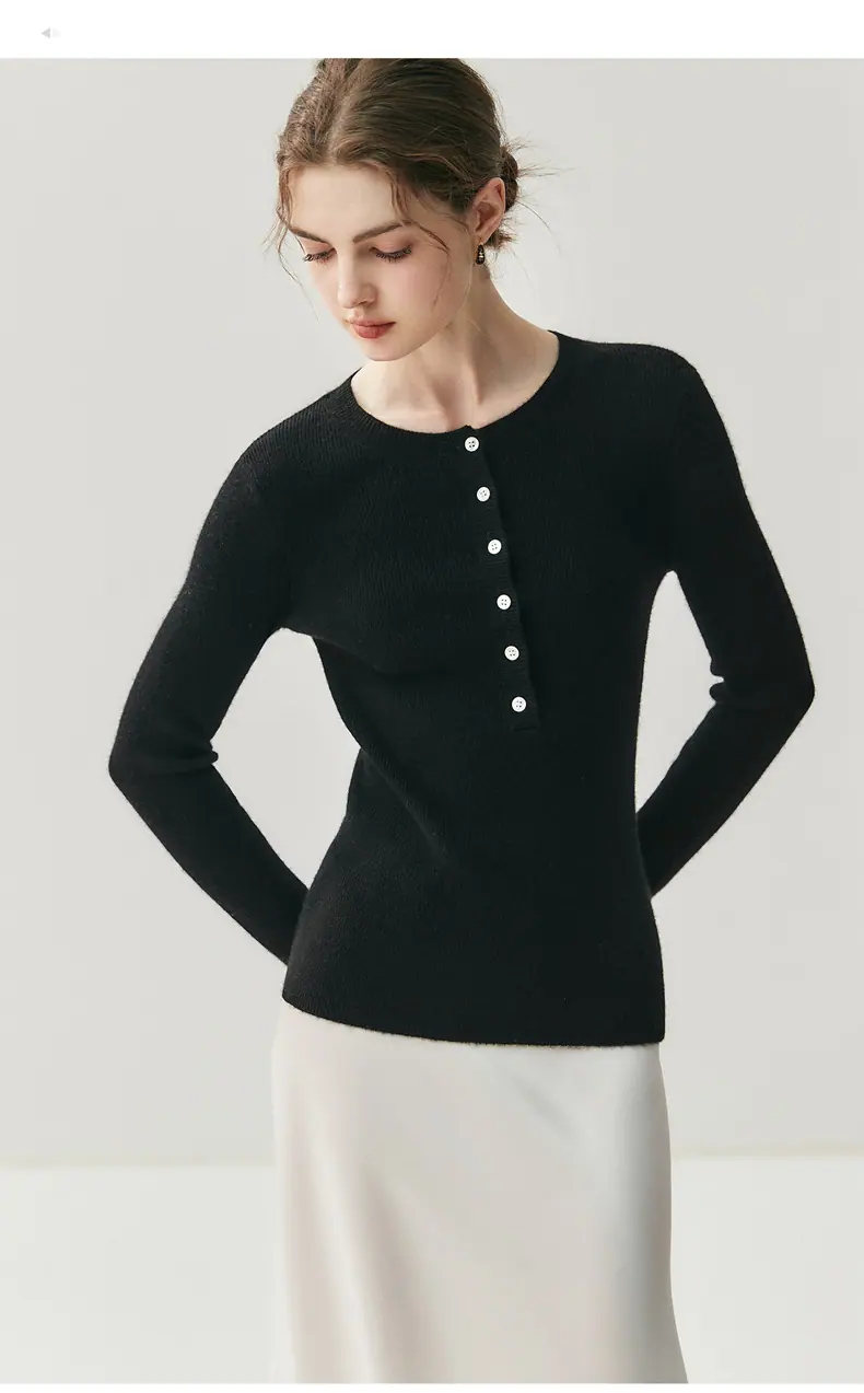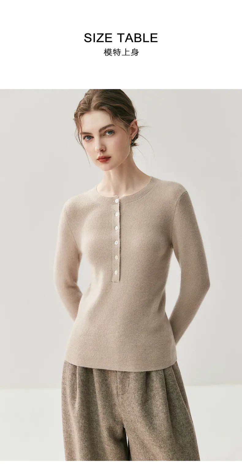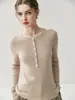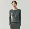 Suéter de Cachemira de Manga Larga con Cuello Redondo y Medio Botón para Mujer, Jersey Ajustado de Color Sólido, Moderno, Cómodo, Capa Base
