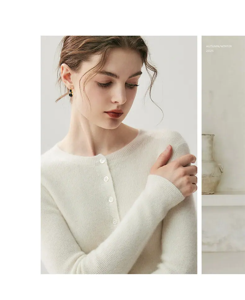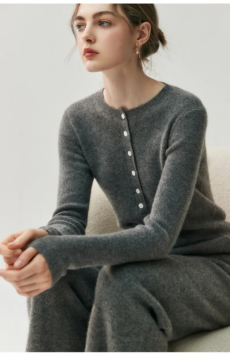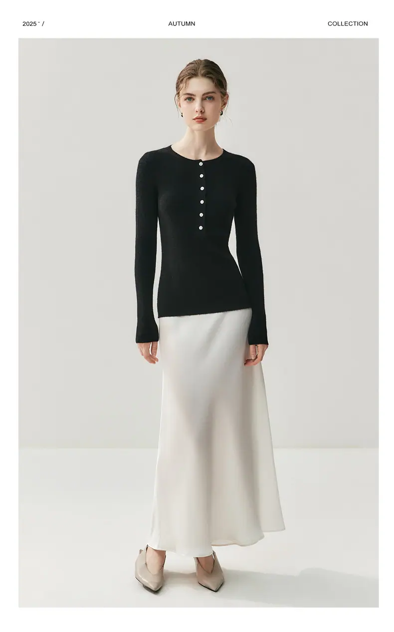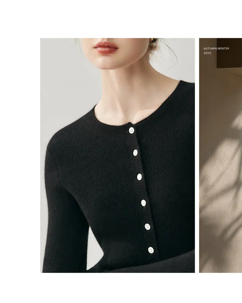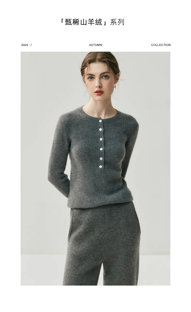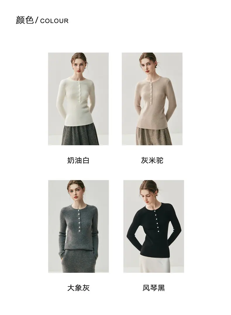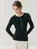 Suéter de Cachemira de Manga Larga con Cuello Redondo y Medio Botón para Mujer, Jersey Ajustado de Color Sólido, Moderno, Cómodo, Capa Base