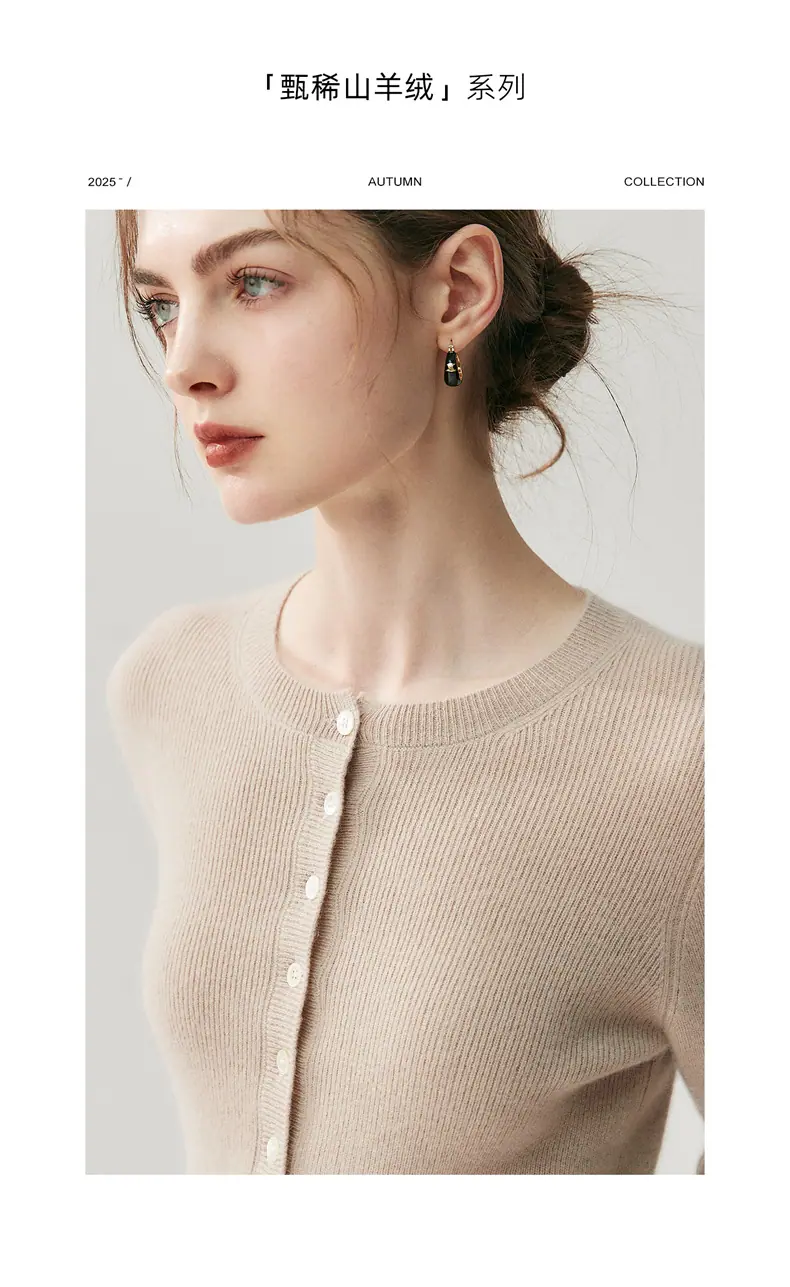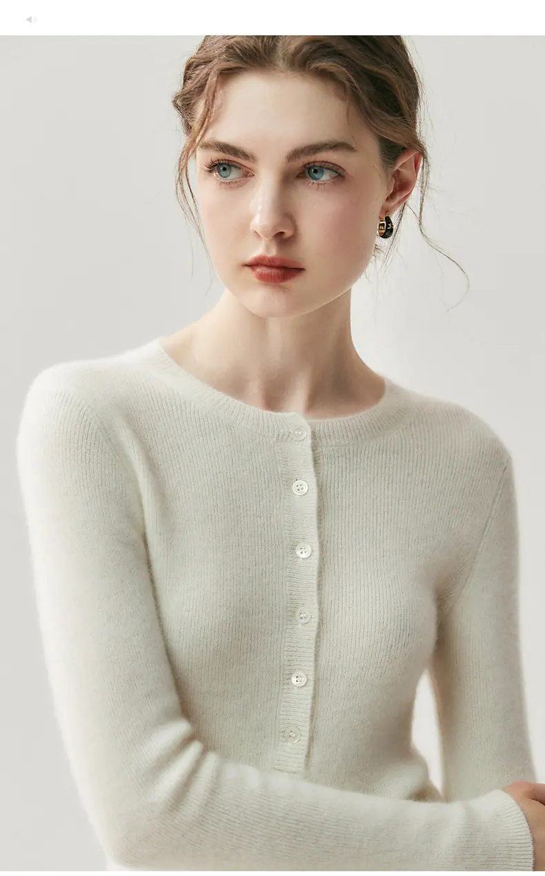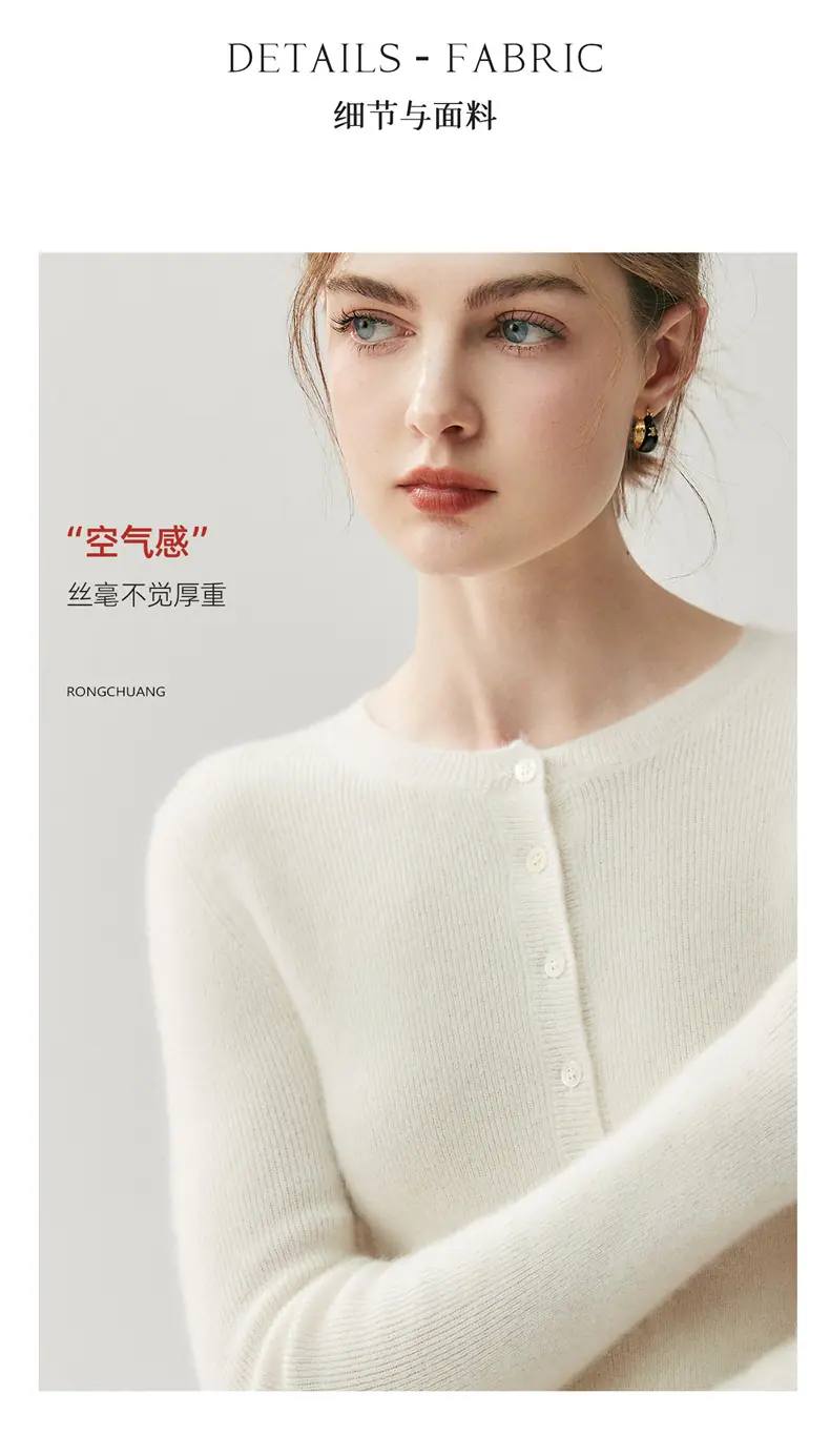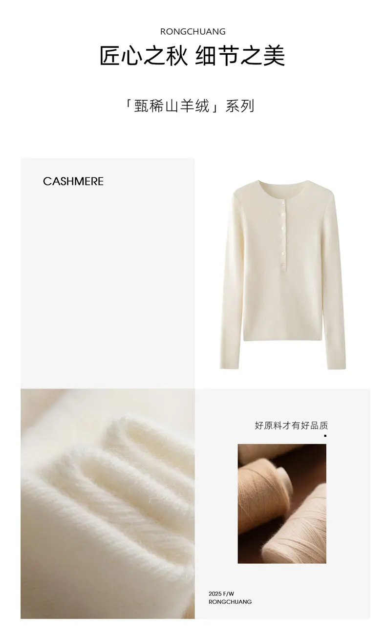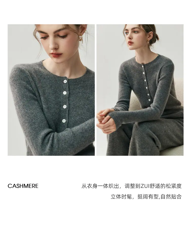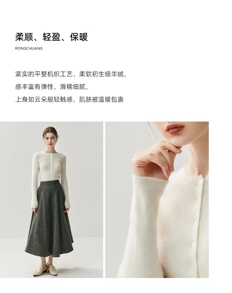 Suéter de Cachemira de Manga Larga con Cuello Redondo y Medio Botón para Mujer, Jersey Ajustado de Color Sólido, Moderno, Cómodo, Capa Base