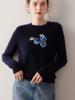 Suéter de Cachemira Mujer 100% Cachemira Pura Otoño e Invierno Nuevo Jersey de Cuello Redondo Jacquard de Arándanos Manga Larga Tejido Suéter Básico