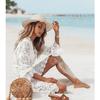 Verano 2022 Transfronterizo Cubre Bikini Europeo y Americano Sexy Cuello en V Camisa Protección Solar Amazon Encaje Falda de Playa
