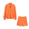 2025 Nuevo Otoño Estilo Europeo y Americano Moda Femenina Elegante Casual Perezoso Cuello en V Manga Larga Shorts Traje Tejido