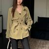2026 Gabardina Corta Elegante de Manga Larga de Moda para Mujer para Primavera y Otoño con Cinturón Casual Tendencia Color Caqui