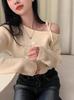 Suéter de Punto Coreano Chic Rojo con Hombros Descubiertos y Cordones para Mujer Primavera y Otoño Nuevo Diseño Nicho Top Suave y Ceroso