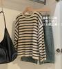 Suéter de Lino de Manga Larga con Cuello Redondo y Bloque de Color a Rayas de Estilo Coreano para Mujer, Holgado y Ajustado