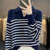 Compra Manga de farol Nueva Camisa base de punto de manga larga para mujer, de hilo fino, transfronteriza, cuello semiabierto, color lana, bloques de color, rayas al por mayor en Joom.pro