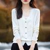 Cárdigan de Lana de Punto de Cuello en V Nuevo de Principios de Otoño 2025 para Mujer Estilo Coreano Suelto y Versátil Top de Manga Larga Chaqueta Tejida de Alta Gama