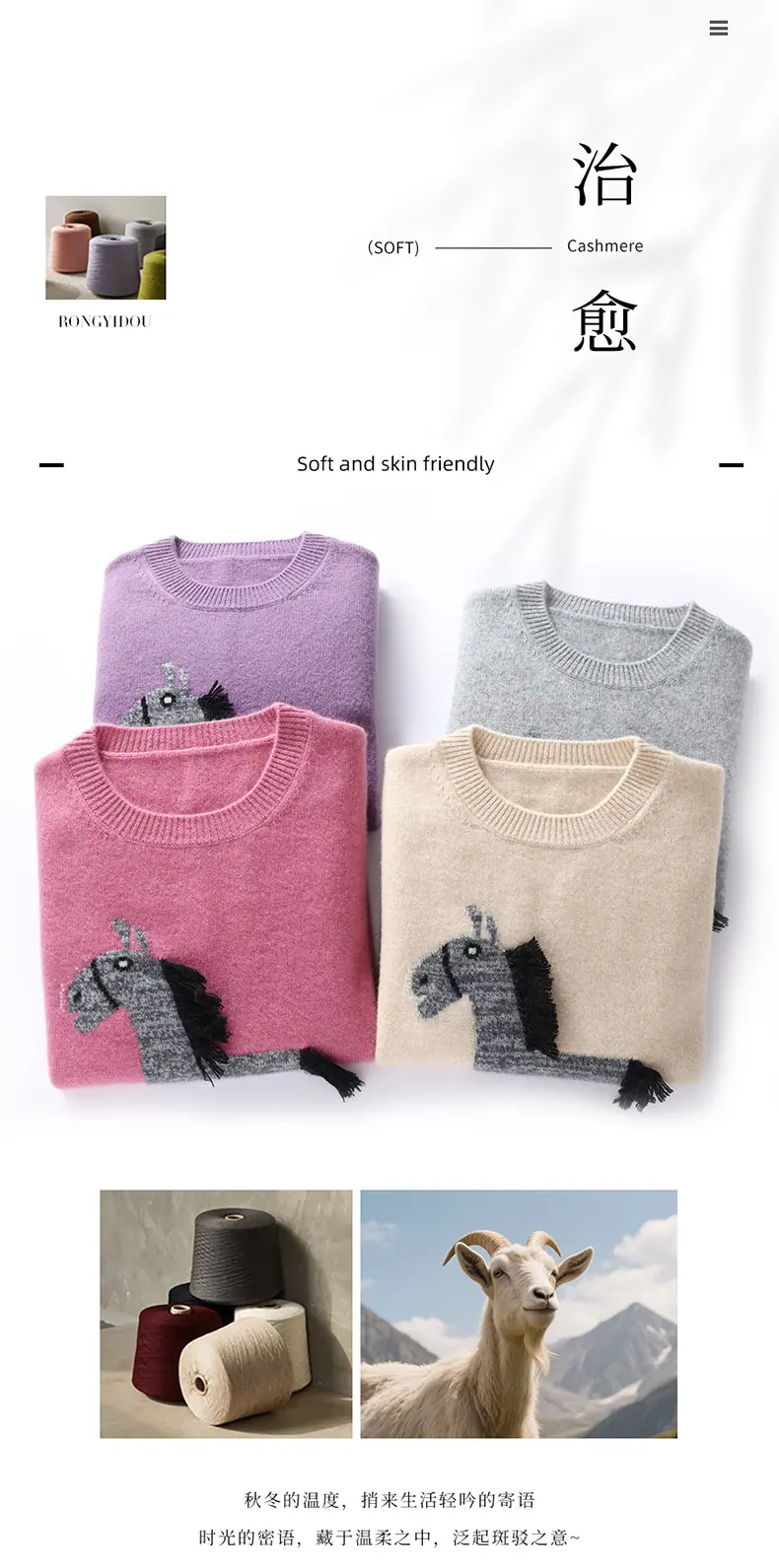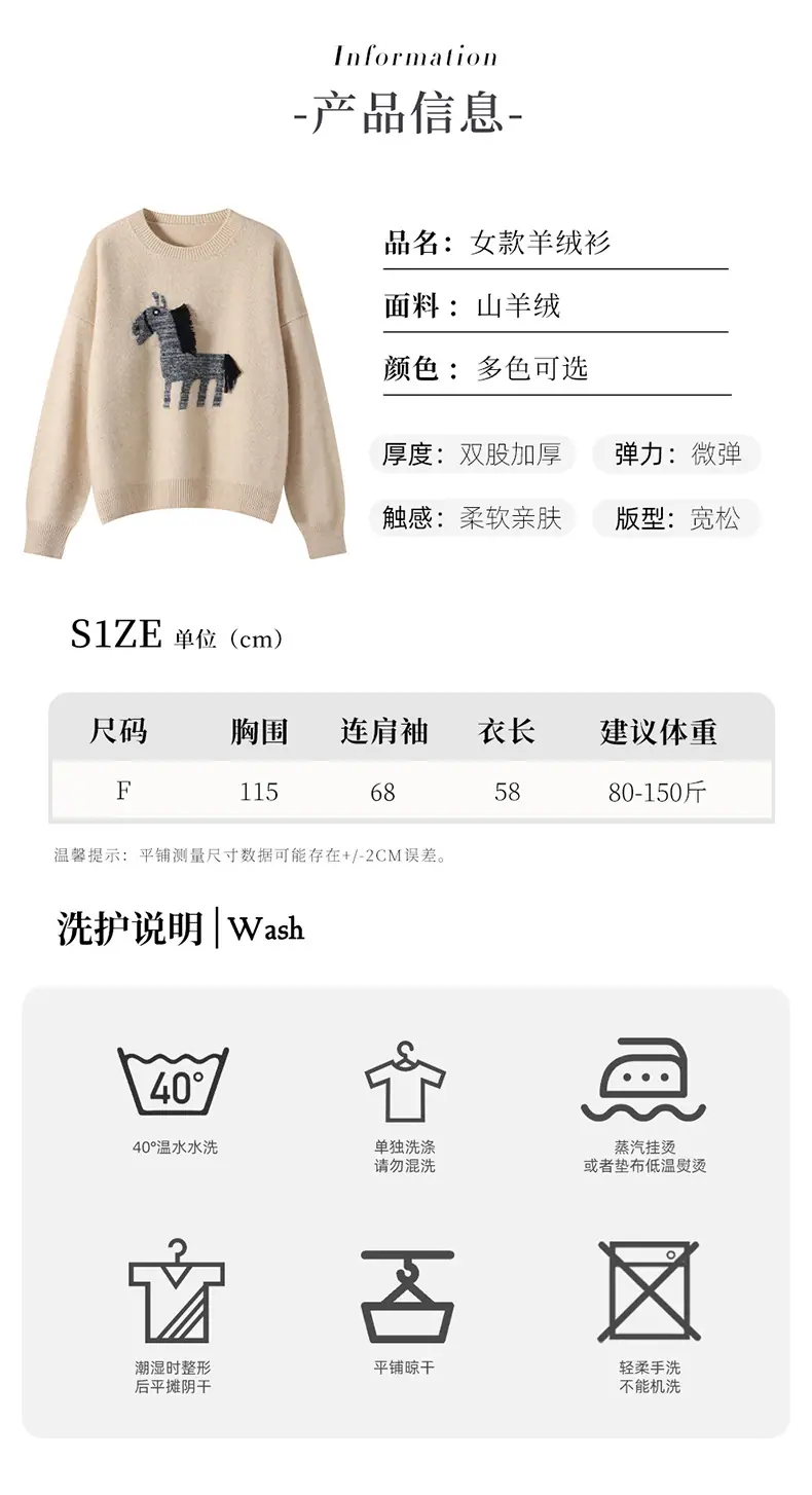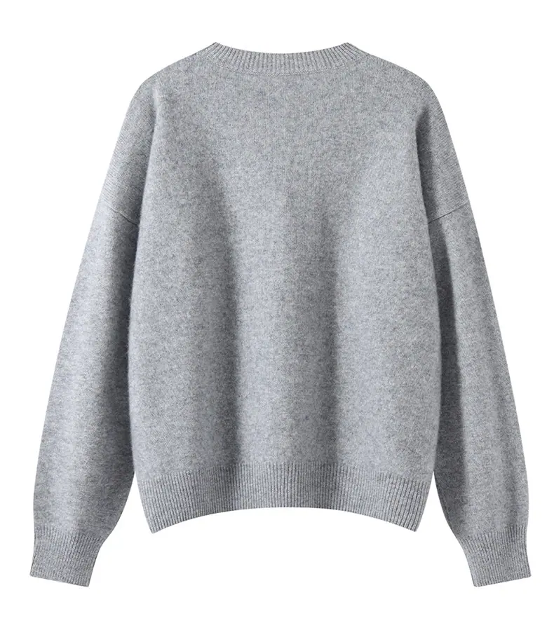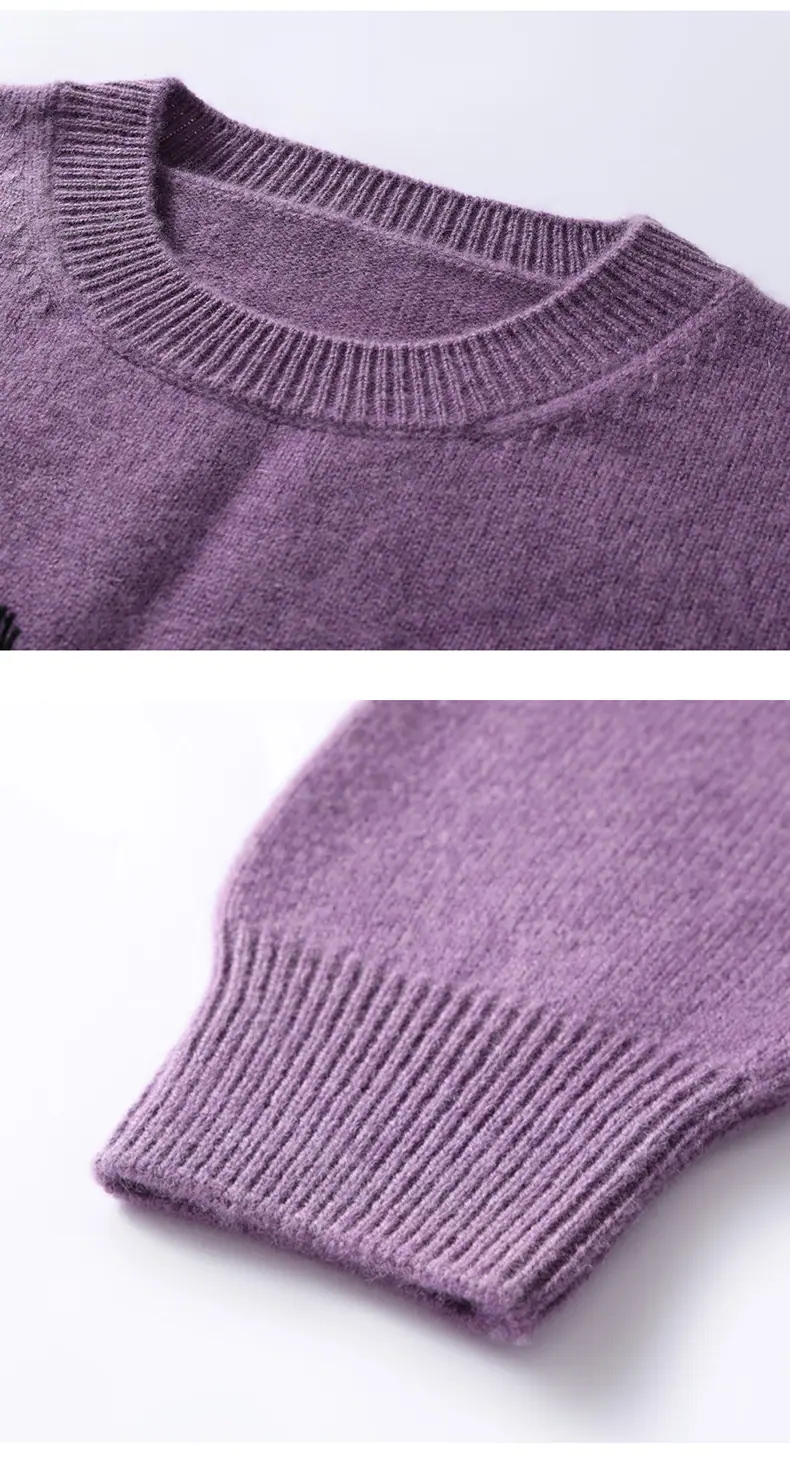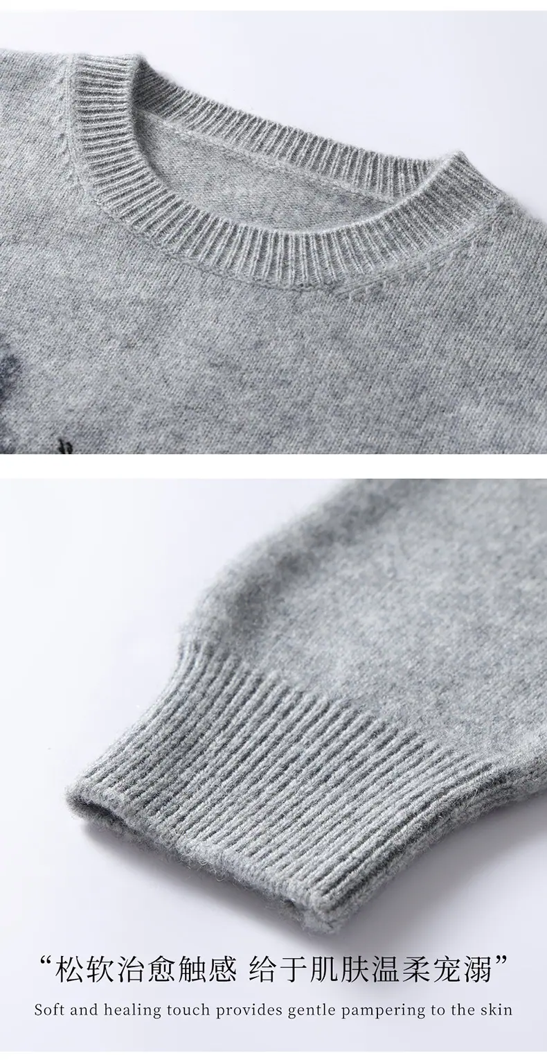 Suéter de Punto de Cachemira Suave y Delicado para la Piel con Jacquard de Caballo Pequeño Simple y Versátil Estilo Coreano para Mujer, Holgado y Adelgazante con Cuello Redondo