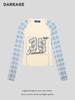 Camiseta de Manga Larga con Bordado de Cuadros Americanos y Empalme para Mujer Otoño Nuevo Estilo Coreano Ajustada Dulce Picante Corta Chic Delgada