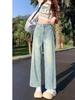 Talla grande Jeans de pierna recta para mujer Verano Delgado 2025 Nuevo Color claro Cintura alta Dosificación Adelgazante Pantalones pequeños de pierna ancha