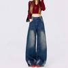 Jeans de Pierna Ancha para Mujer Otoño e Invierno 2025 Nuevo Retro Americano Desgastado de Cintura Alta Ajustados Sueltos Caídos Rectos