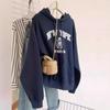 Sudadera Pulóver con Capucha con Estampado de Letras Retro Coreano para Mujer en Otoño Nuevo Diseño Holgada Casual Versátil Top
