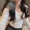 Compra Camiseta de Manga Larga con Cuello de Encaje en el Hombro Derecho Pure Desire para Mujer, Camiseta Básica, Nuevo Diseño Otoño 2025, Top Delgado de Nicho al por mayor en Joom.pro