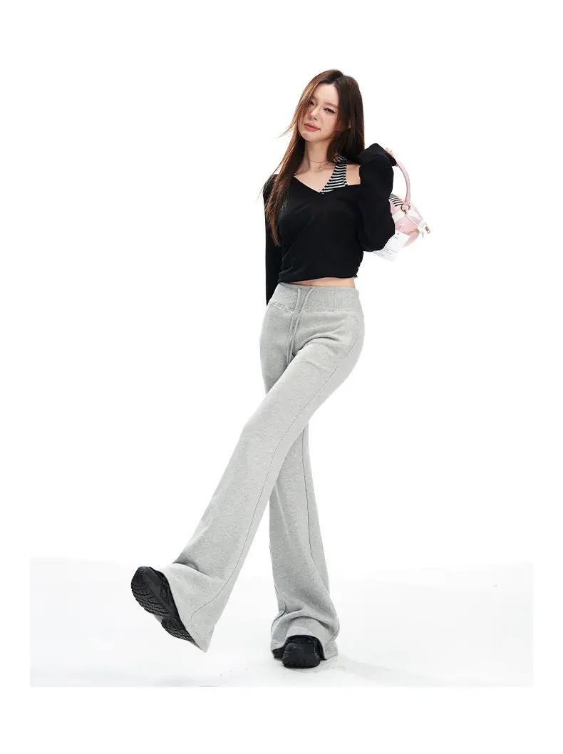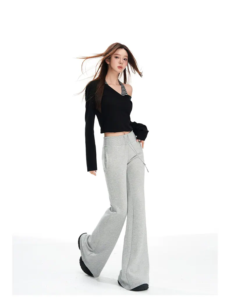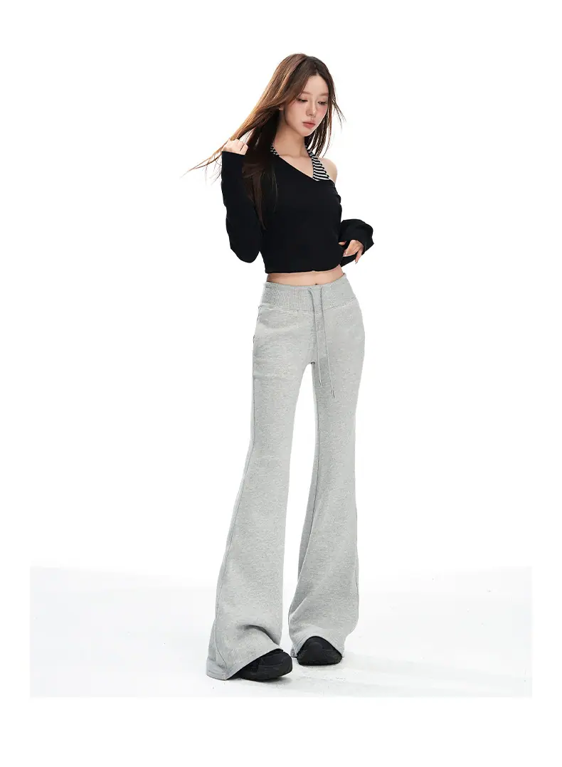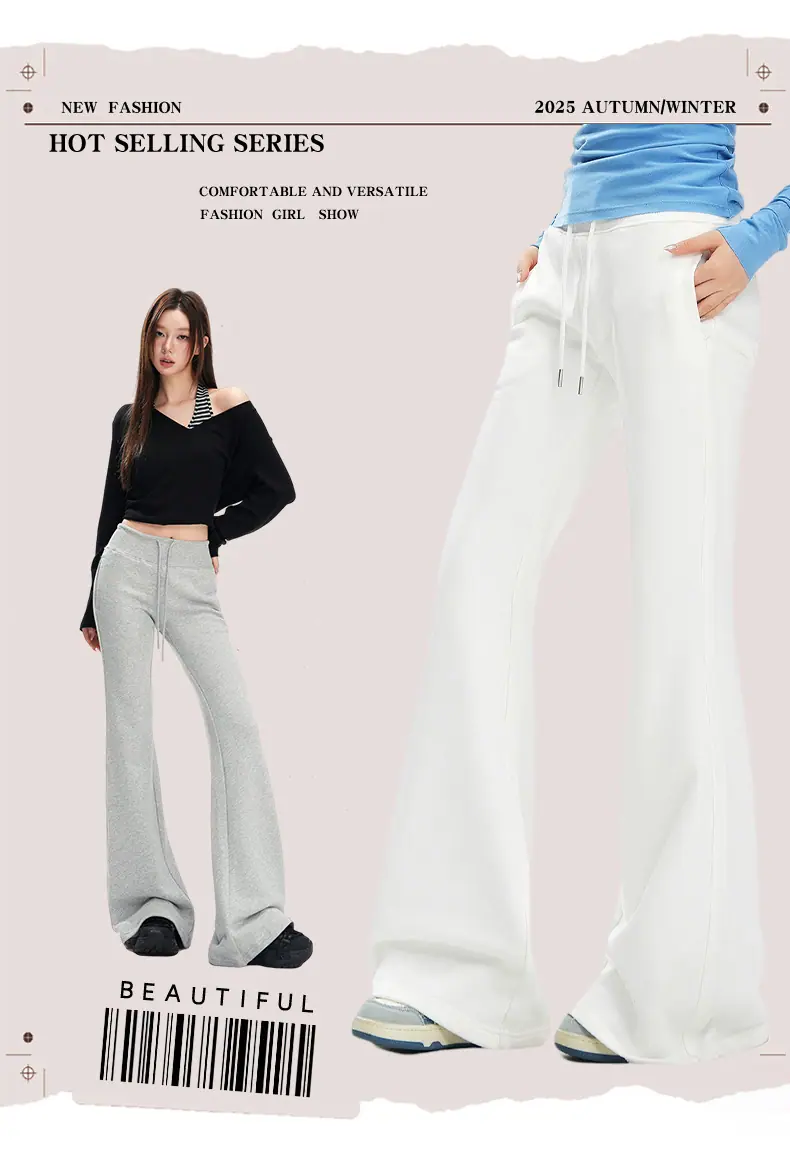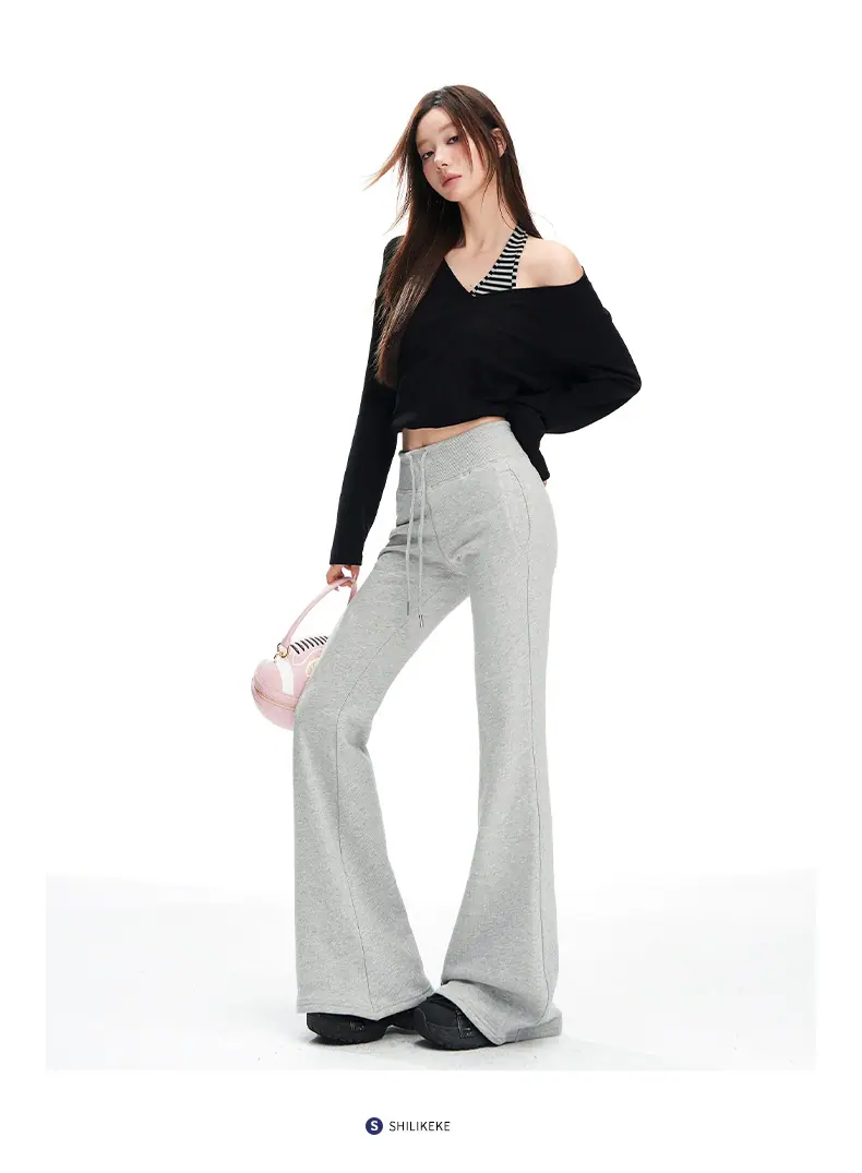 Pantalones casuales acampanados grises para mujer 2025 otoño nuevos de talle alto adelgazantes con cordón versátiles pantalones deportivos