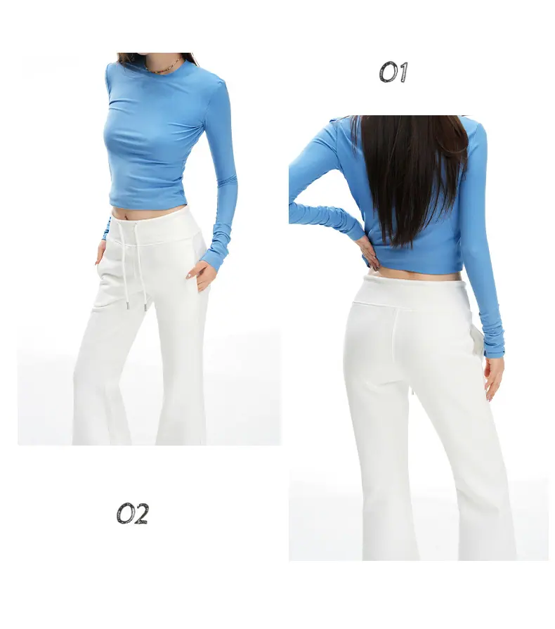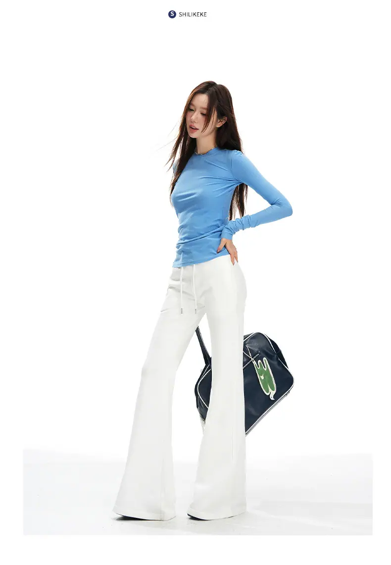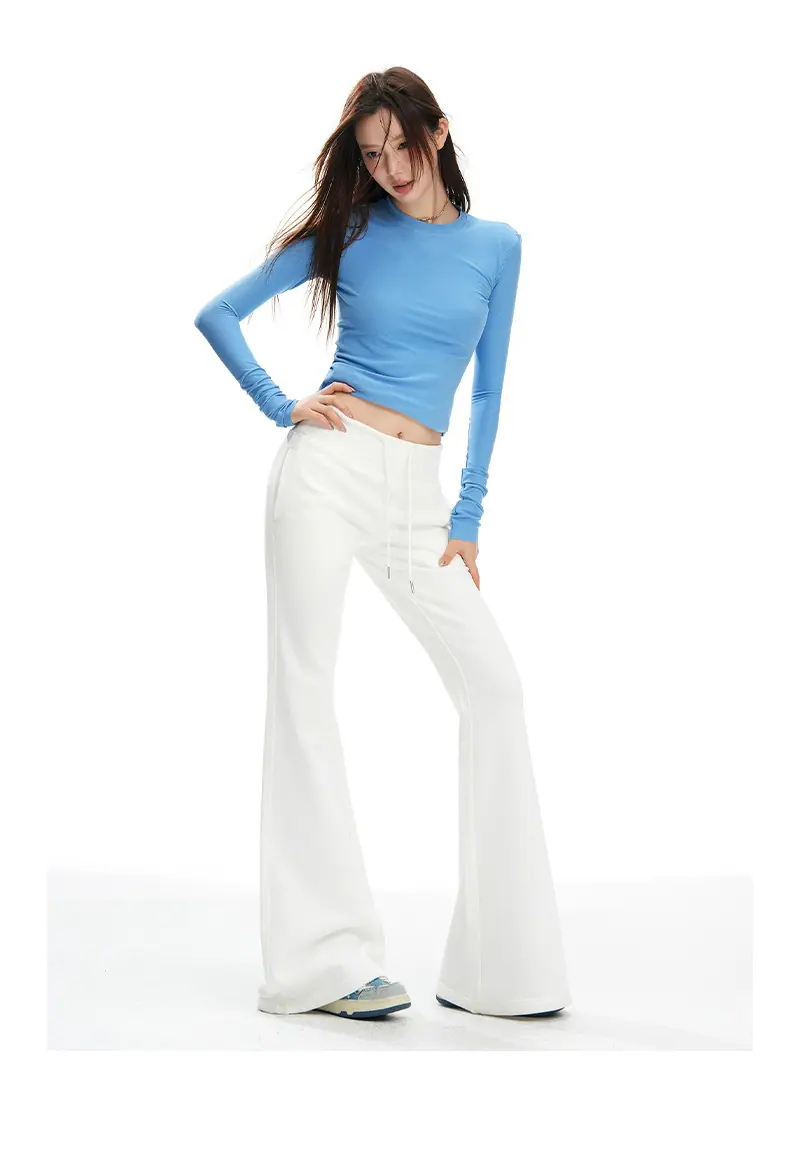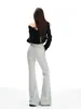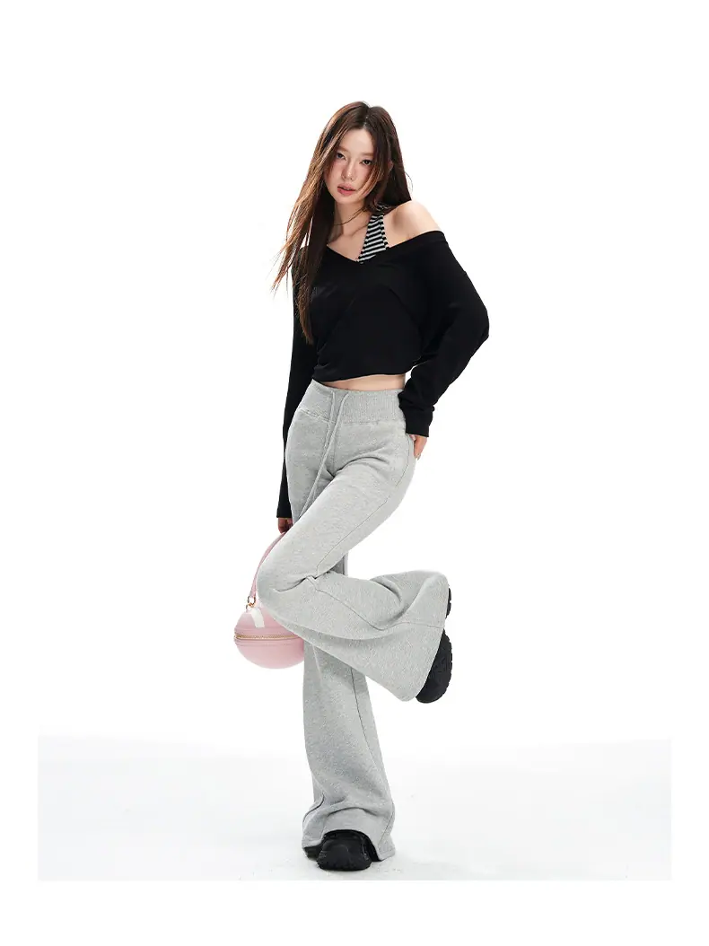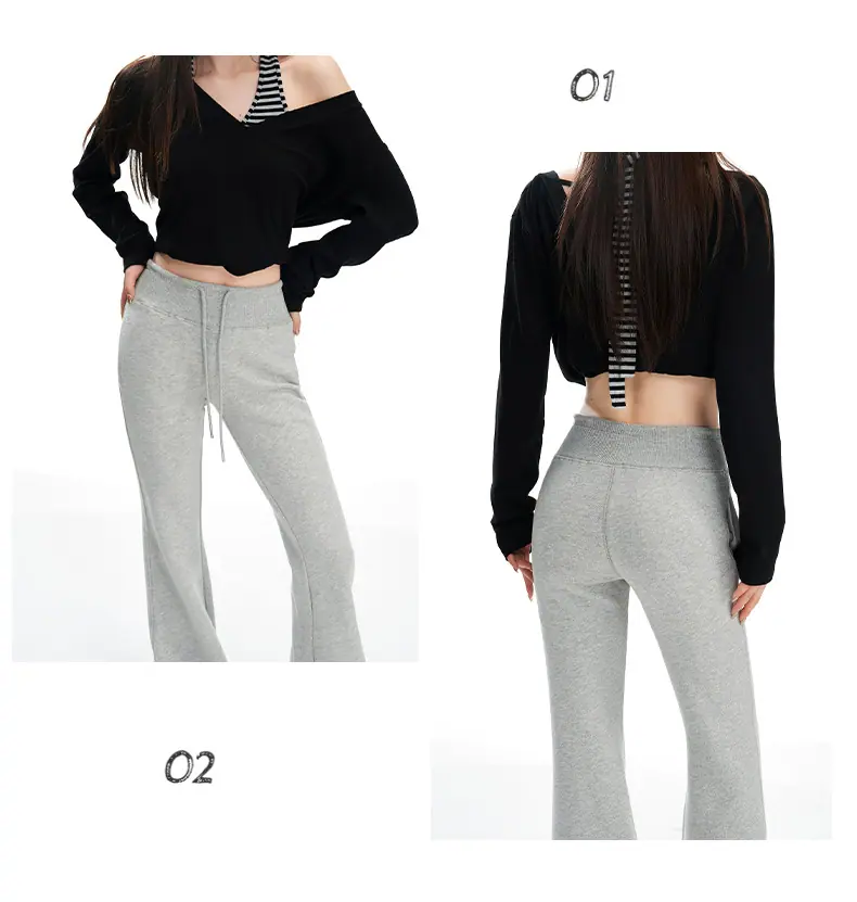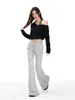 Pantalones casuales acampanados grises para mujer 2025 otoño nuevos de talle alto adelgazantes con cordón versátiles pantalones deportivos