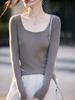 2025 Nuevo Jersey de Punto Fino Imitación Lana Cuello en U para Mujer Ajustado Casual Simple de Manga Larga Color Sólido