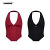 Compra Unbdns Estilo Urbano Sexy Cuello en V Halter Camisola para Mujer Verano Cintura Hueso de Pescado Chica Caliente Top Exterior sin Mangas al por mayor en Joom.pro