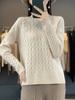 Otoño/Invierno 2025 Nuevo Suéter de Punto de Manga Larga de Cuello Medio Alto de Pura Lana para Mujer, Diseño Intarsia de Alto Calibre