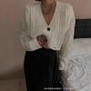 Cárdigan de punto con cuello en V, estilo corto sexy europeo y americano, suéter chaqueta de manga larga retro con trenzado de Amazon para mujer