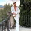 Vestido de Color Sólido con Mangas Largas, Elegante, Ajustado, de Cintura Alta, Escote en V Sexy, Estilo Europeo y Americano Transfronterizo, Nuevo Otoño 2025 para Mujer