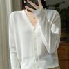 Cárdigan de Punto de Seda de Hielo de Primavera 2025 con Cuello en V y Manga Larga, Color Sólido, Holgado, Combinable con Todo, Chaqueta para Mujer