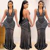 Moda europea y americana ebay AliExpress sexy profundo V espalda descubierta vestido de fiesta de club nocturno vestido de perspectiva de pedrería
