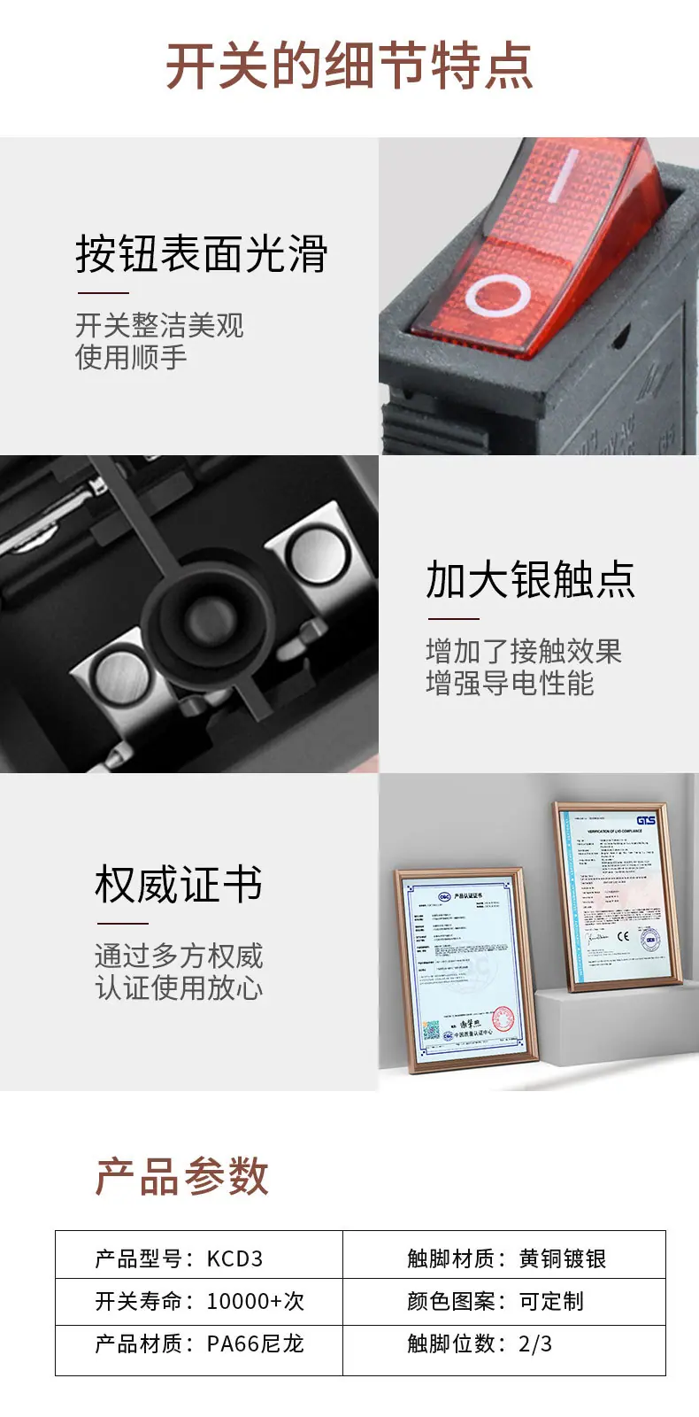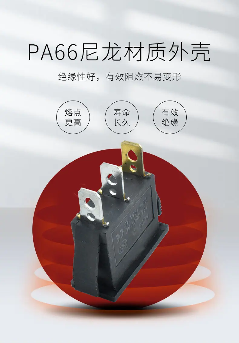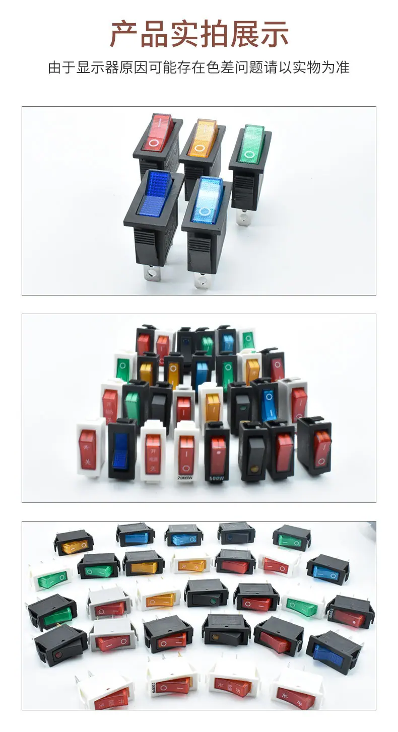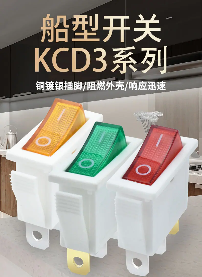 3 pies 2 posiciones interruptor basculante amarillo KCD3 interruptor basculante en blanco cuadrado imprimible luz LED interruptor de alimentación