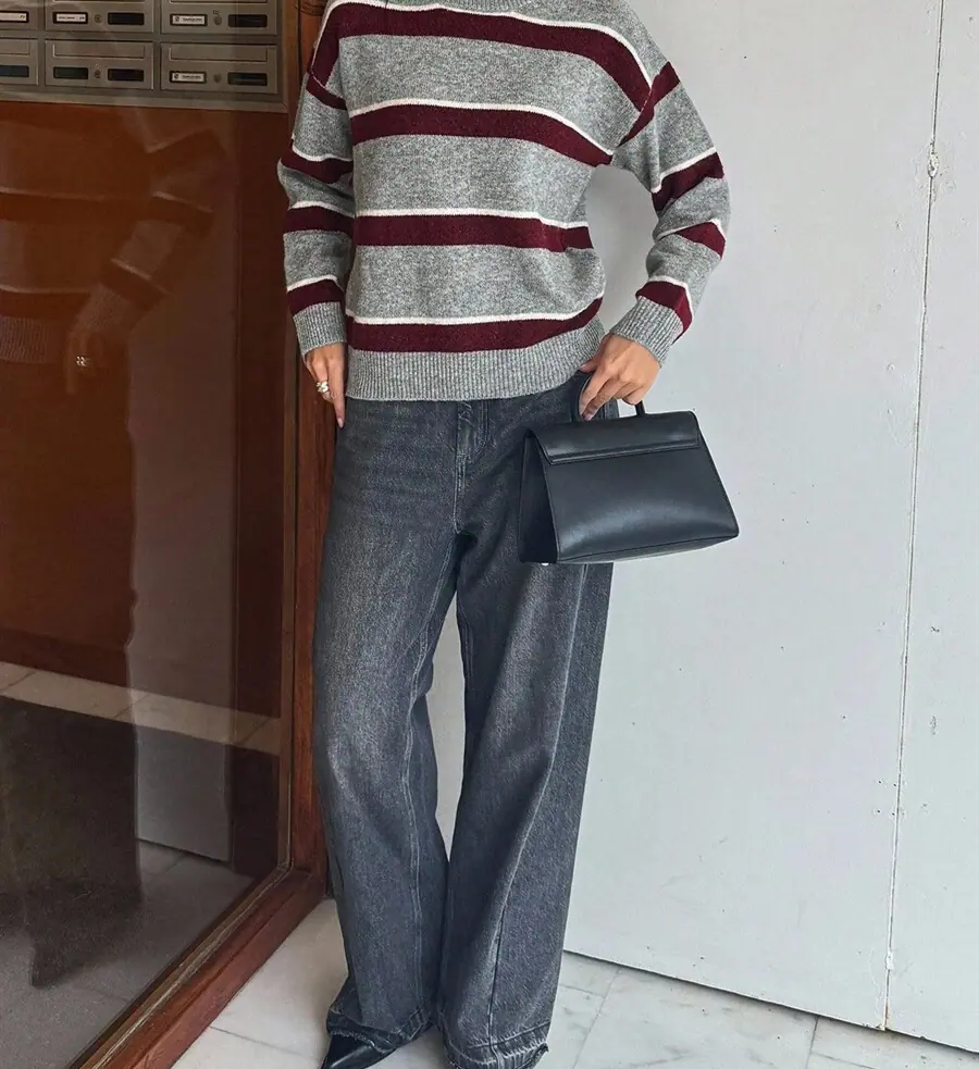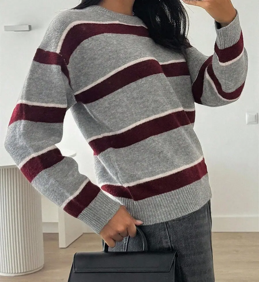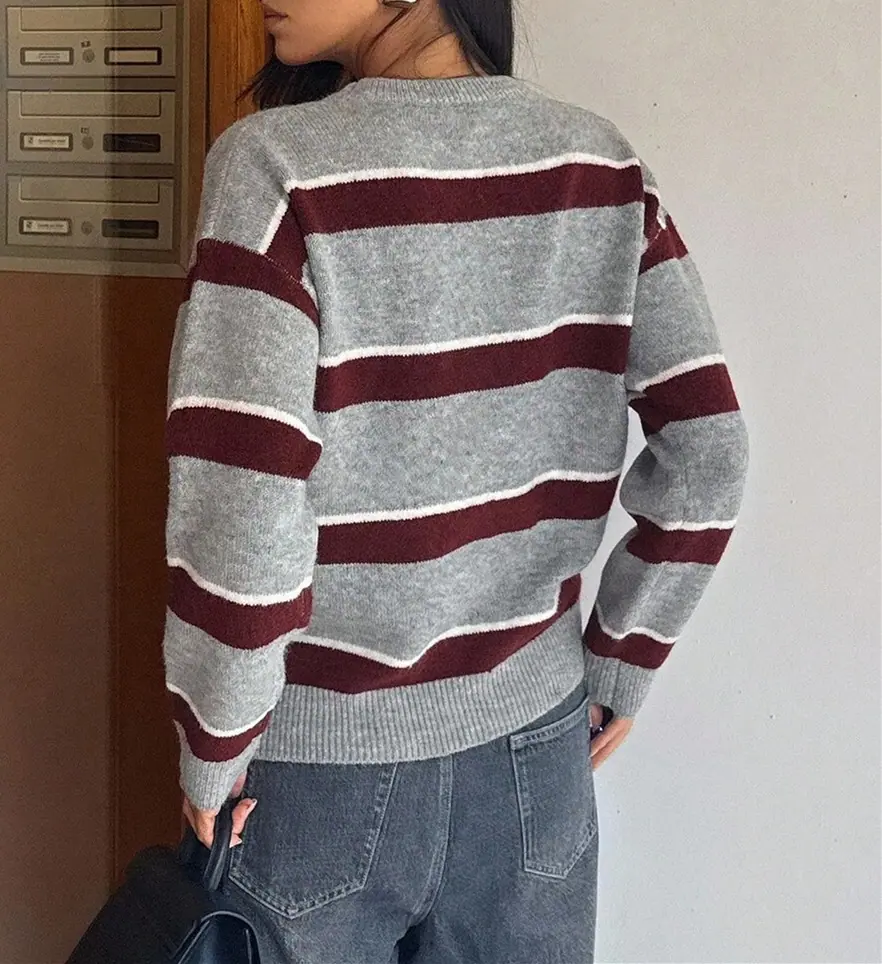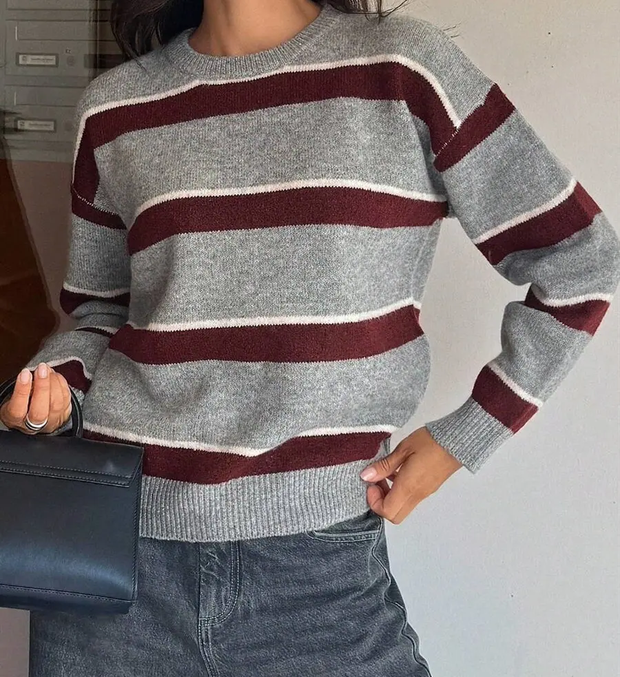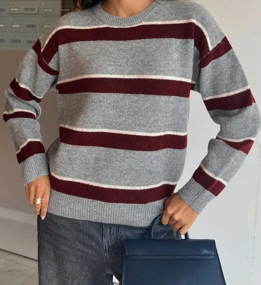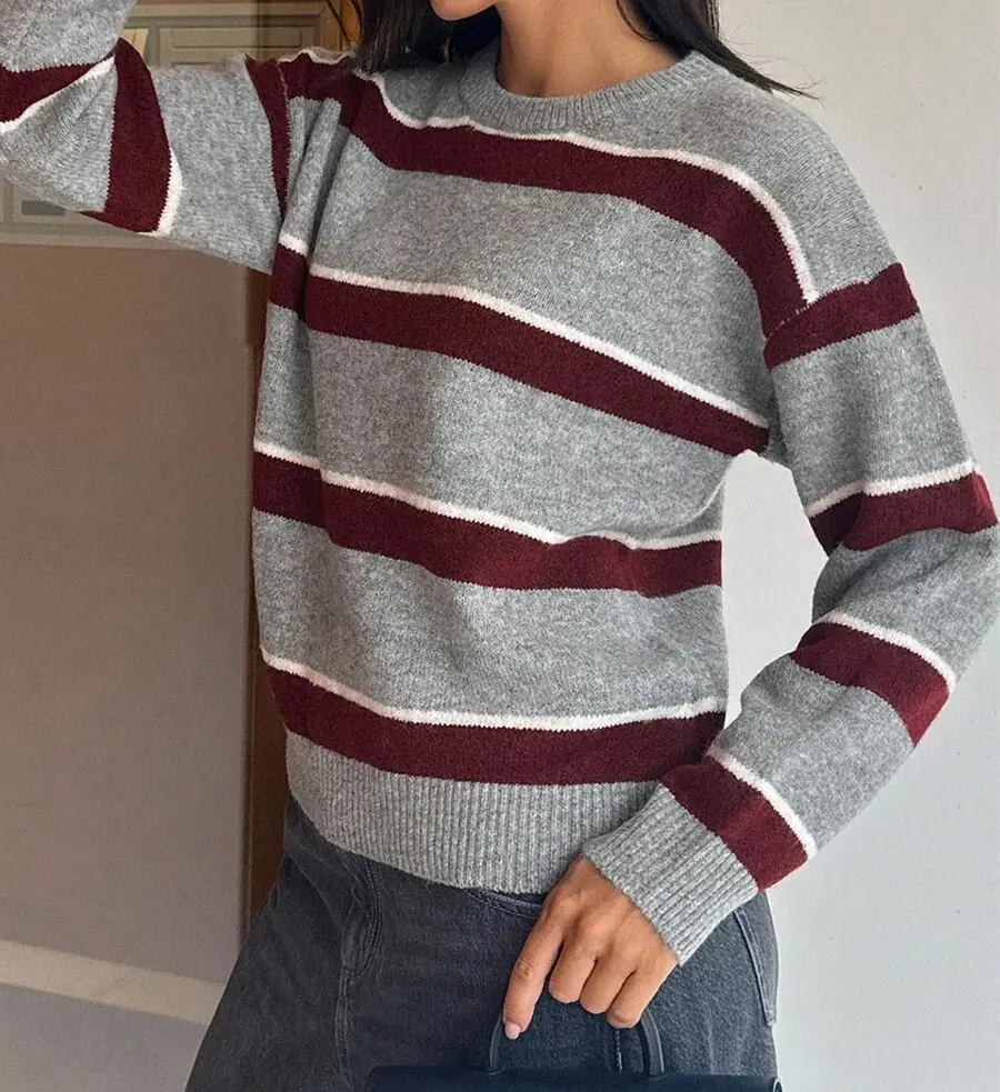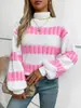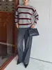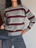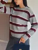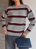 Suéter de Punto a Rayas con Bloque de Color Casual de Moda de Estilo Perezoso Transfronterizo Europeo y Americano de Otoño e Invierno Suéter Holgado Versátil de Manga Larga