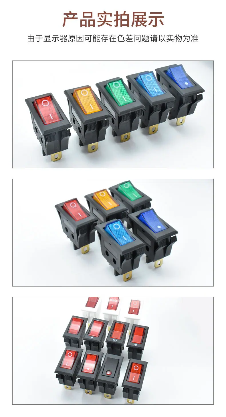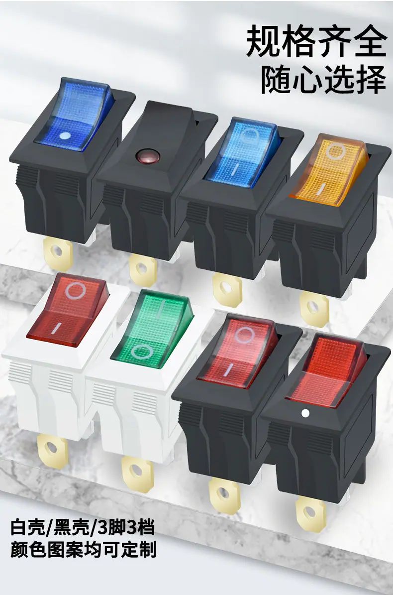 Interruptor Basculante KCD3 Carcasa Verde Transparente Impreso OI Interruptor Basculante Tres Patas Dos Posiciones Luz LED Interruptor de Encendido
