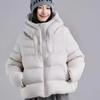 Chaqueta de Plumas Europea para Mujer 2025 Invierno Nuevo Corta Casual con Capucha Pequeña Elegante Cálida Abrigo de Plumas de Pato Blanco