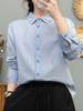 Camisa de Algodón Puro Cepillado de Color Sólido Estilo Nuevo de Primavera y Otoño Holgada Clásica Versátil Estilo Coreano Cuello Vuelto Camisa Top para Mujer