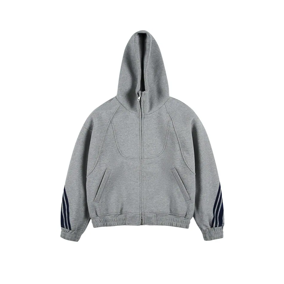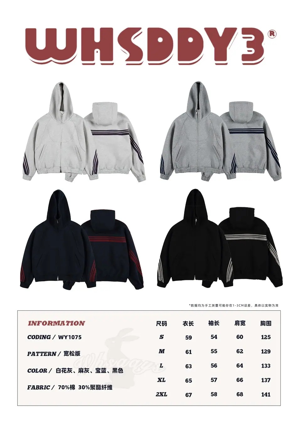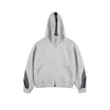 WHSDDY3 Marca Americana Urbana de Moda Cárdigan Sudadera con Capucha Hombre Rayado Patchwork Silueta Holgada Hoodie WY1075