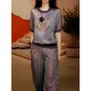 Traje de Pantalón de Estilo Casual de Lujo Ligero a la Moda para Mujer, Nuevo Verano Slim Jersey Cuello Redondo Camisa Estilo Coreano + Pantalón Largo 8282
