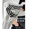 Pantalones deportivos de dos usos a rayas transfronterizas para mujer 2025 Primavera y Otoño Nuevo Pantalón recto ajustado de cintura alta Pantalones casuales holgados con cordón