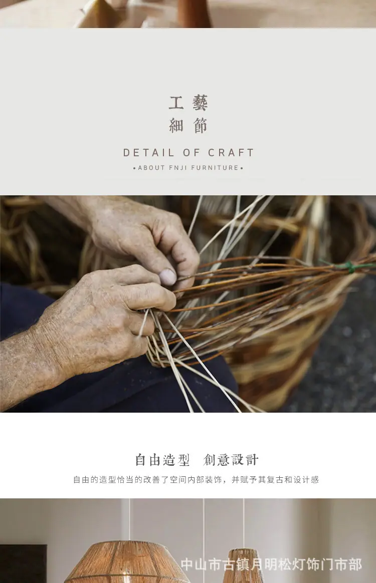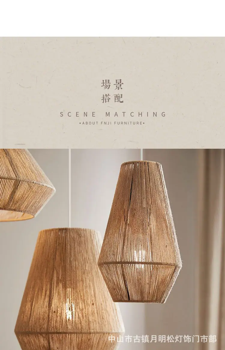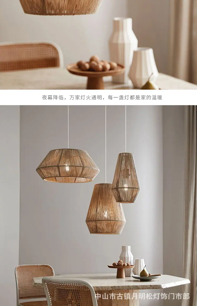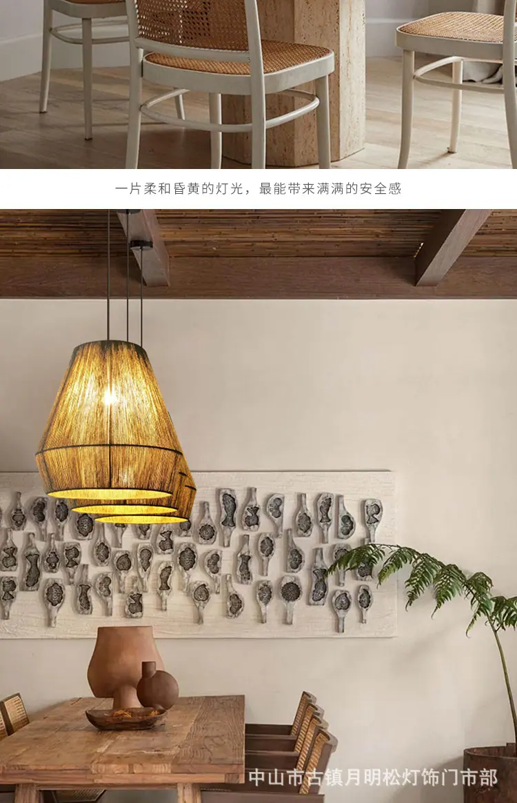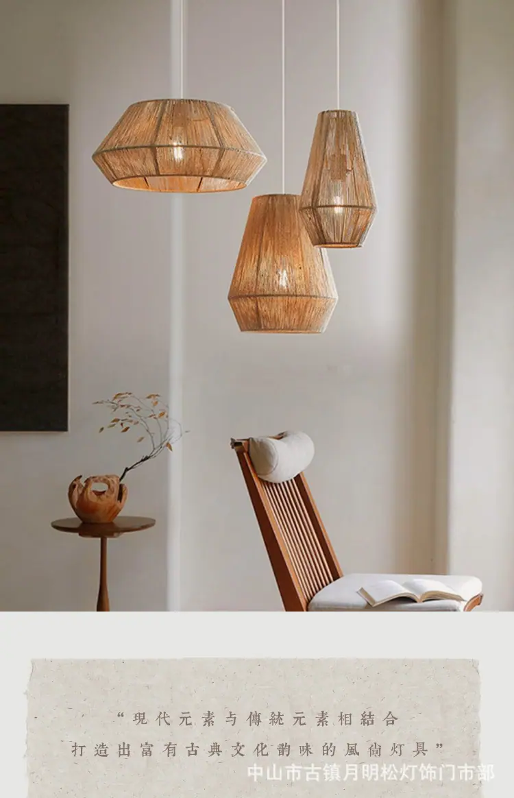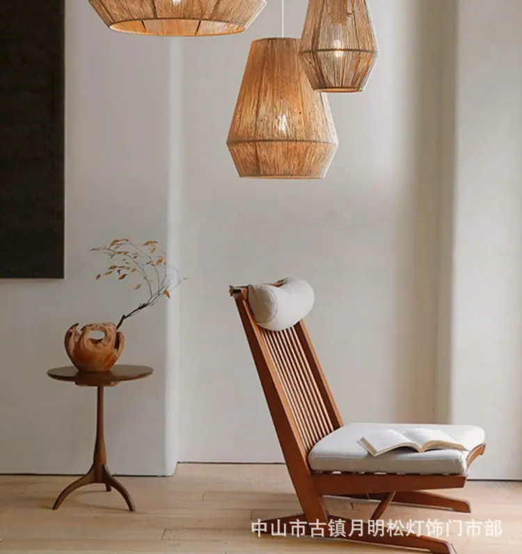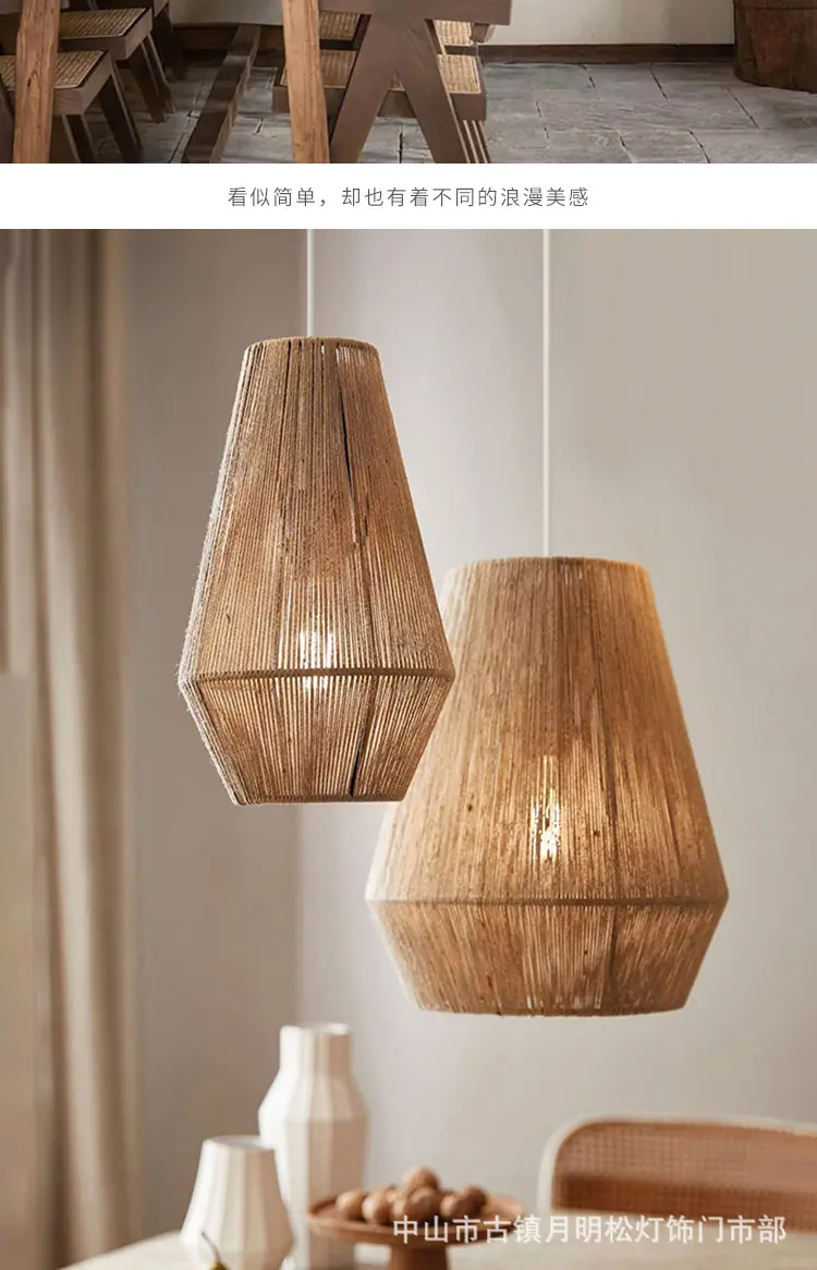 Candelabro de estilo japonés con estilo único personalidad creativa restaurante casa de huéspedes bar dormitorio retro hecho a mano cuerda de cáñamo tejido lámpara de arte de ratán