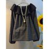 Estilo Retro Moda Simple Cuadros Cuello con Volantes Nicho Holgado Look Adelgazante Versátil 2025 Otoño Nuevos Tops para Mujer