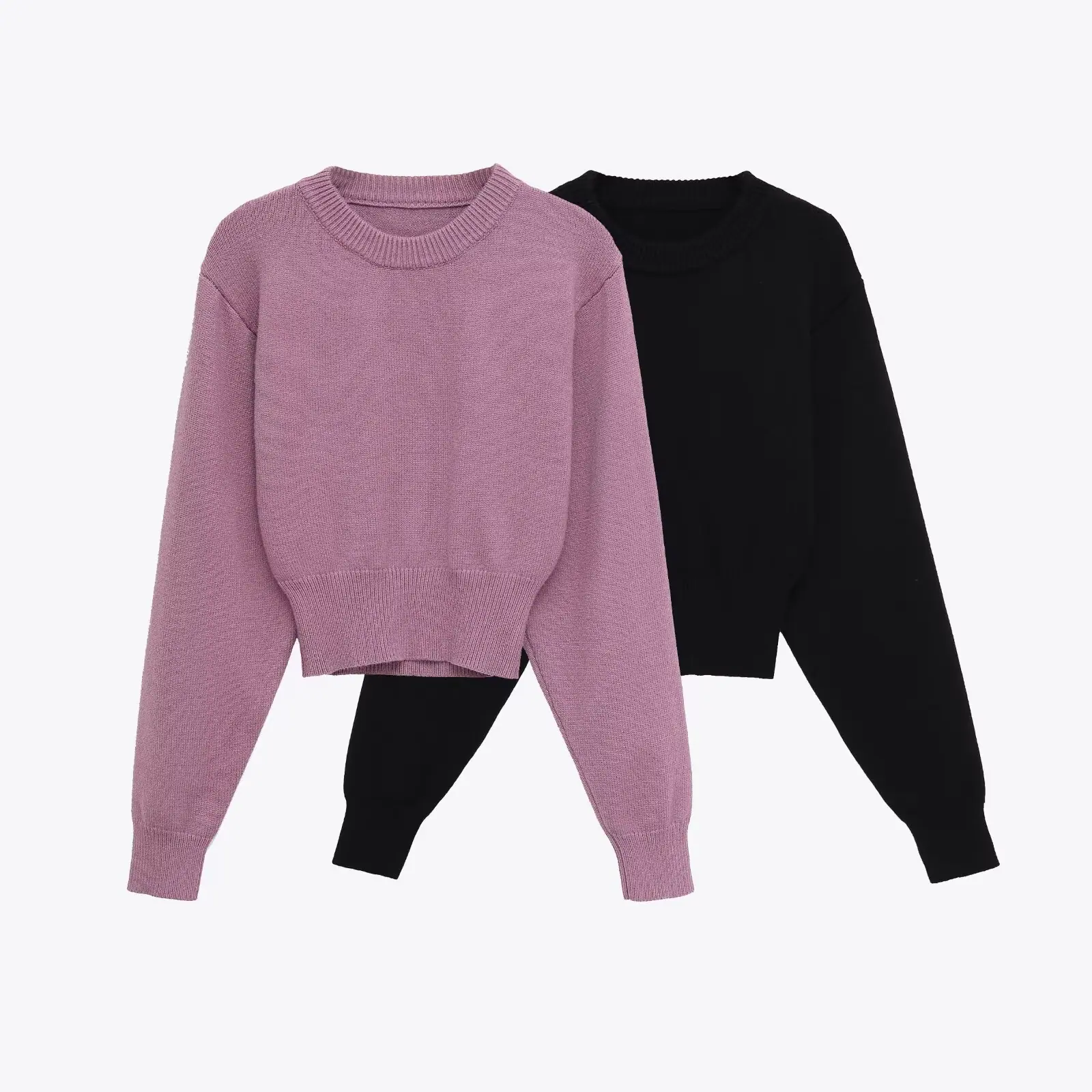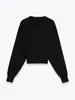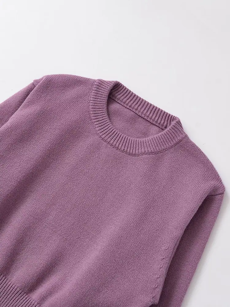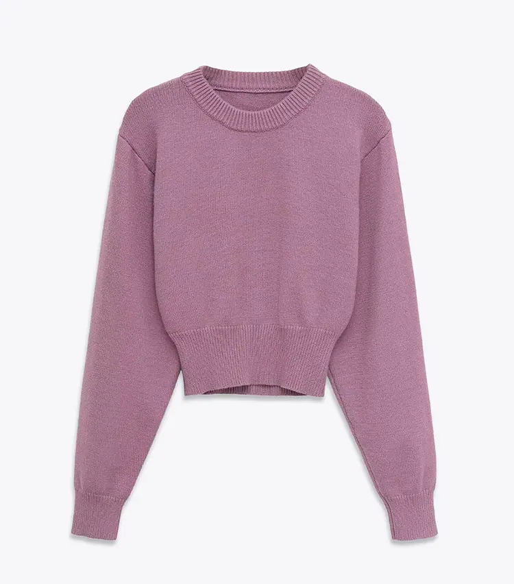 Estilo INS otoño e invierno personalidad para mujer cuello redondo manga murciélago de cintura alta corta suéter de punto color sólido estilo transfronterizo europeo y americano