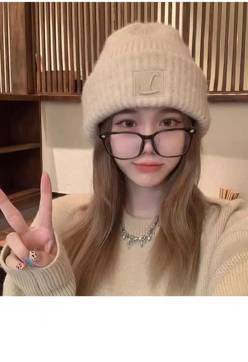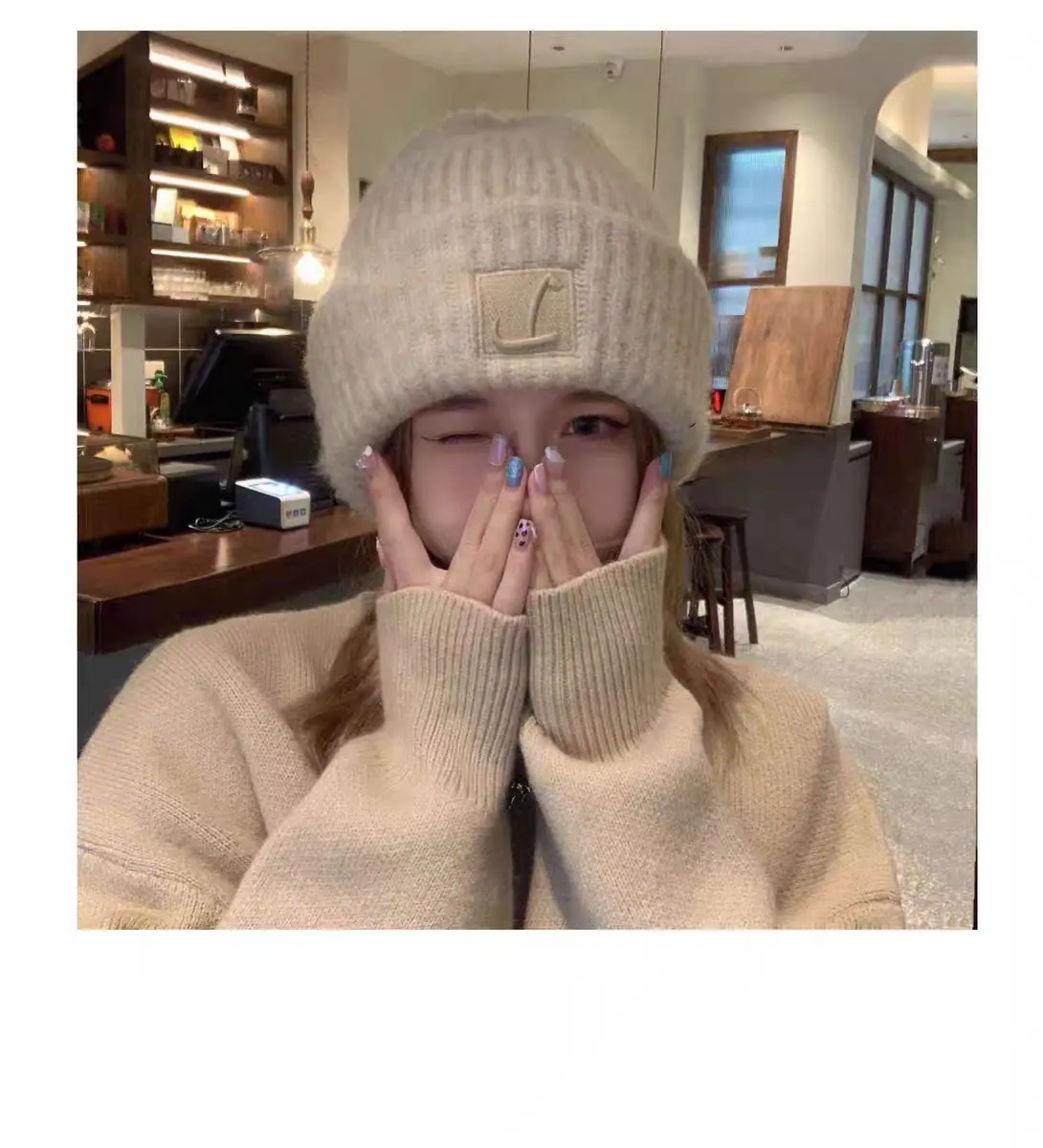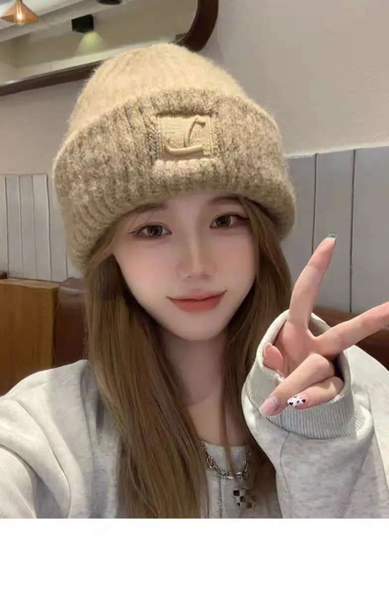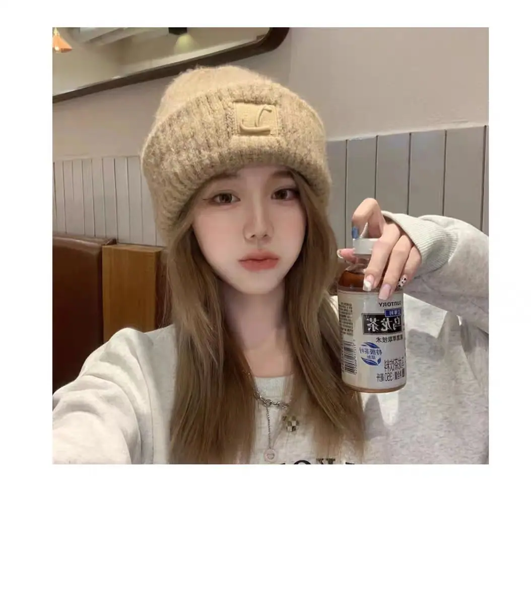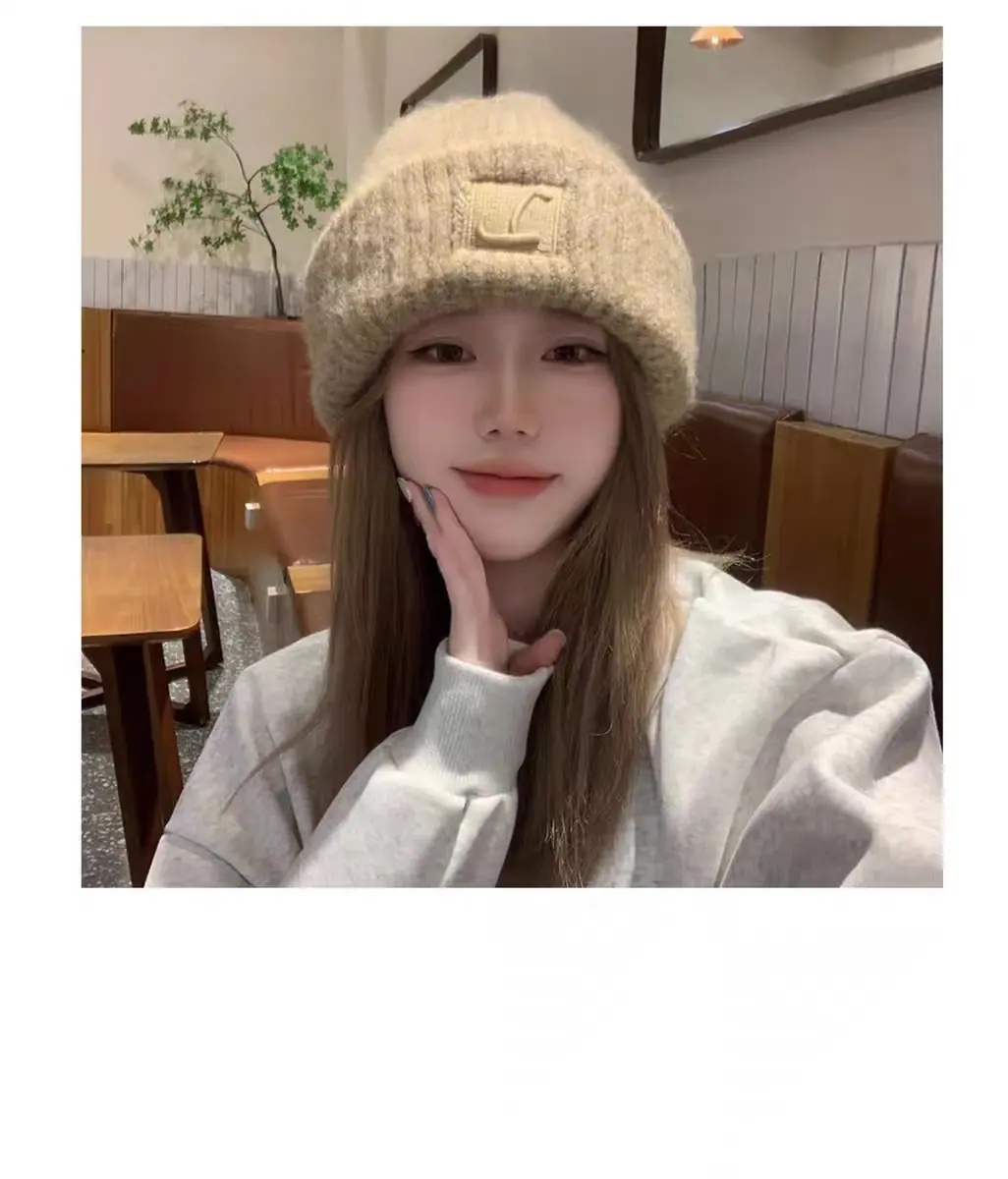 Sombrero de Lana Invierno Japonés Combinable para Mujer Sombrero de Lana Tejido para Cabeza Grande Popular en Internet Cara Pequeña Cálido Protección para las Orejas Sombrero para el Frío