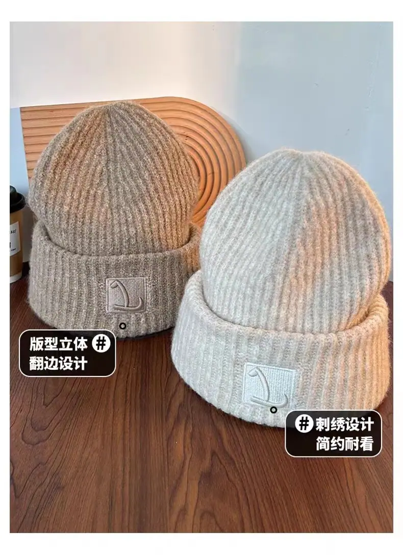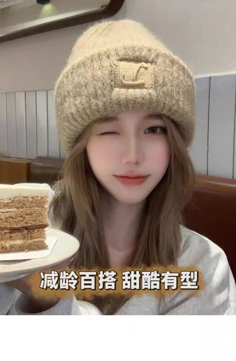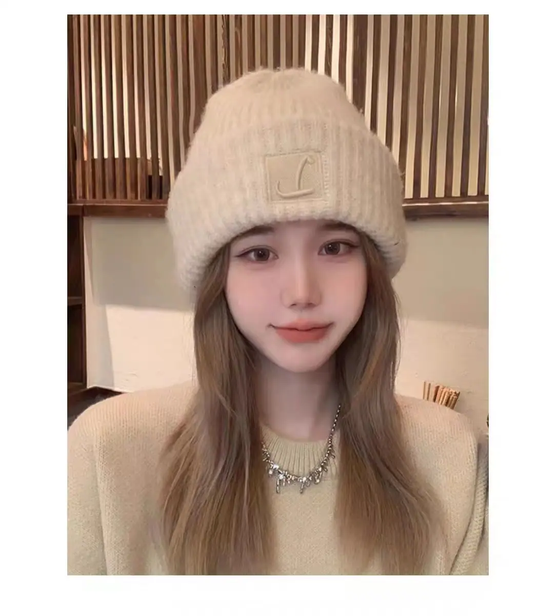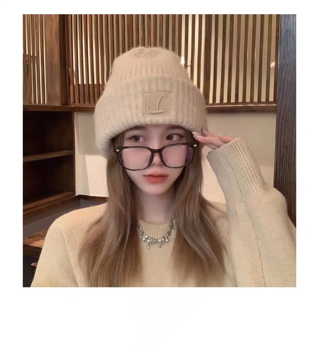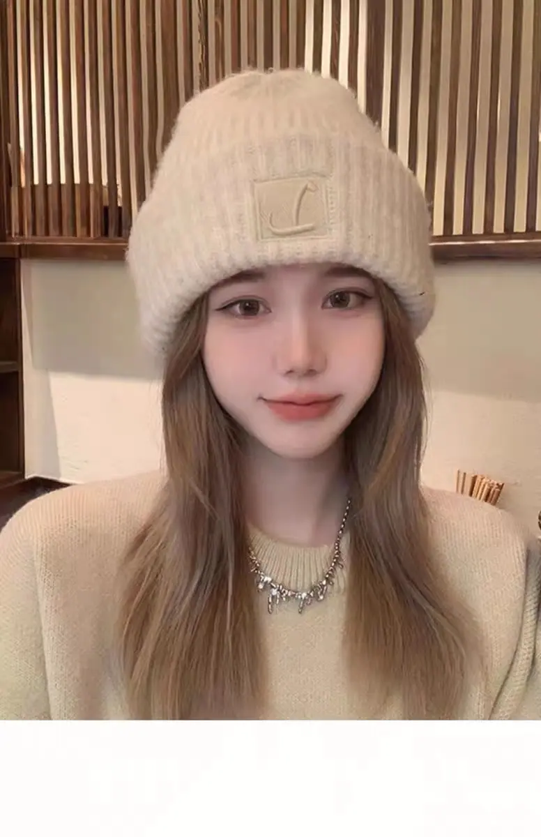 Sombrero de Lana Invierno Japonés Combinable para Mujer Sombrero de Lana Tejido para Cabeza Grande Popular en Internet Cara Pequeña Cálido Protección para las Orejas Sombrero para el Frío