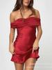 Europeo y Americano Transfronterizo 2025 Nueva Moda Sexy Ajustado Color Sólido Hombro Descubierto Vestido sin Tirantes Ropa de Mujer