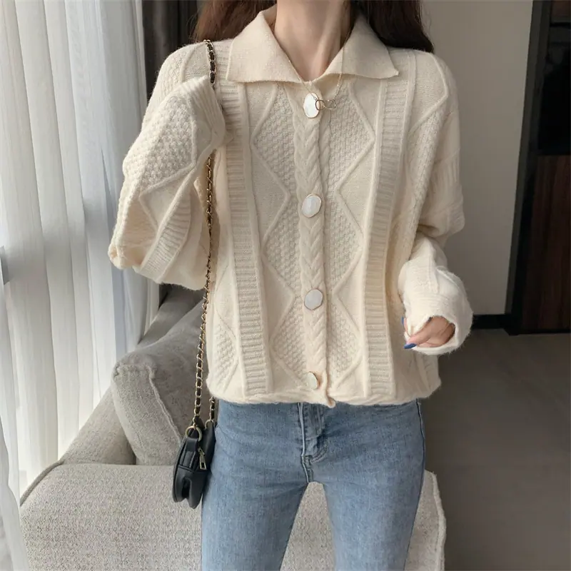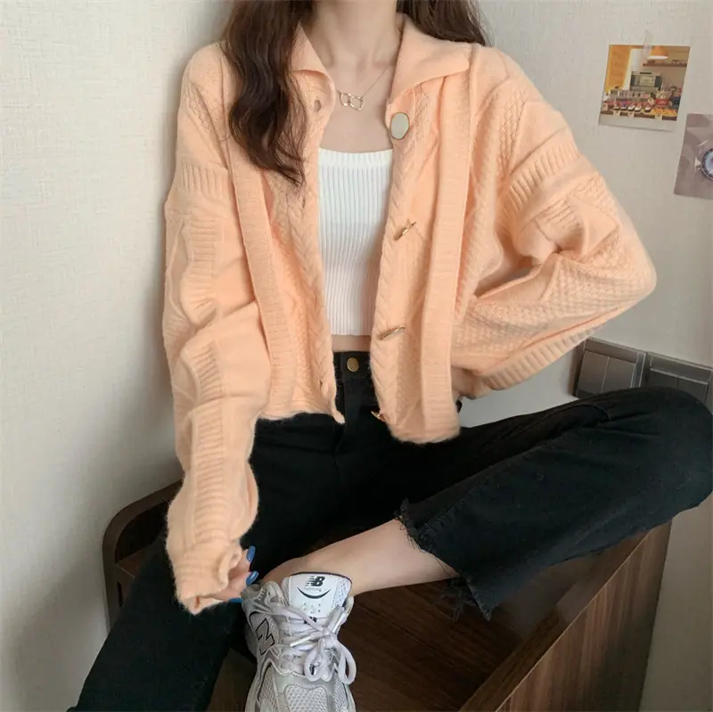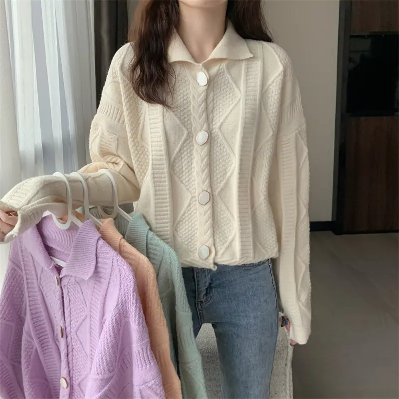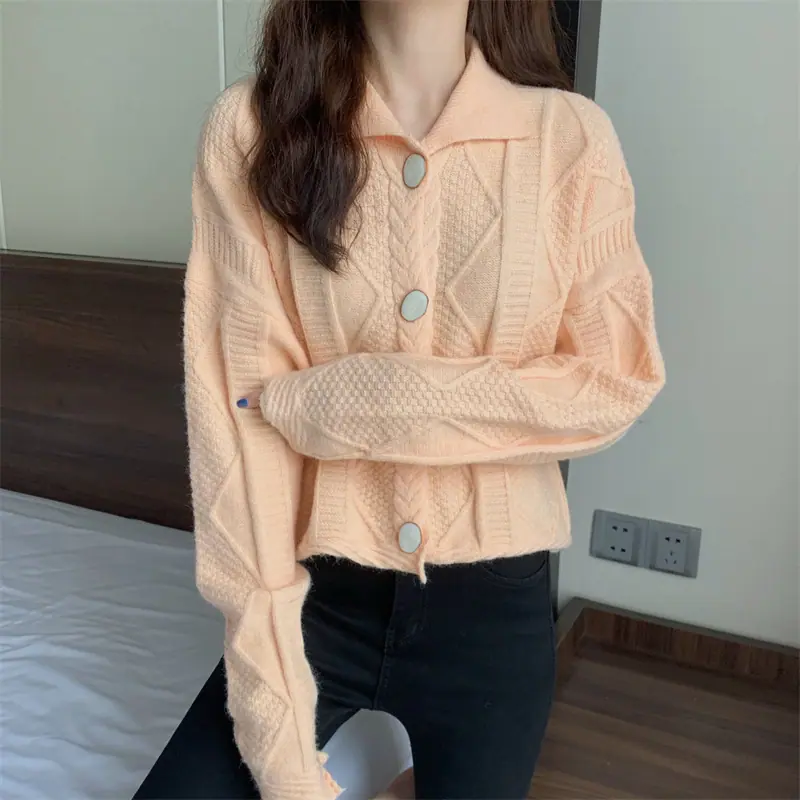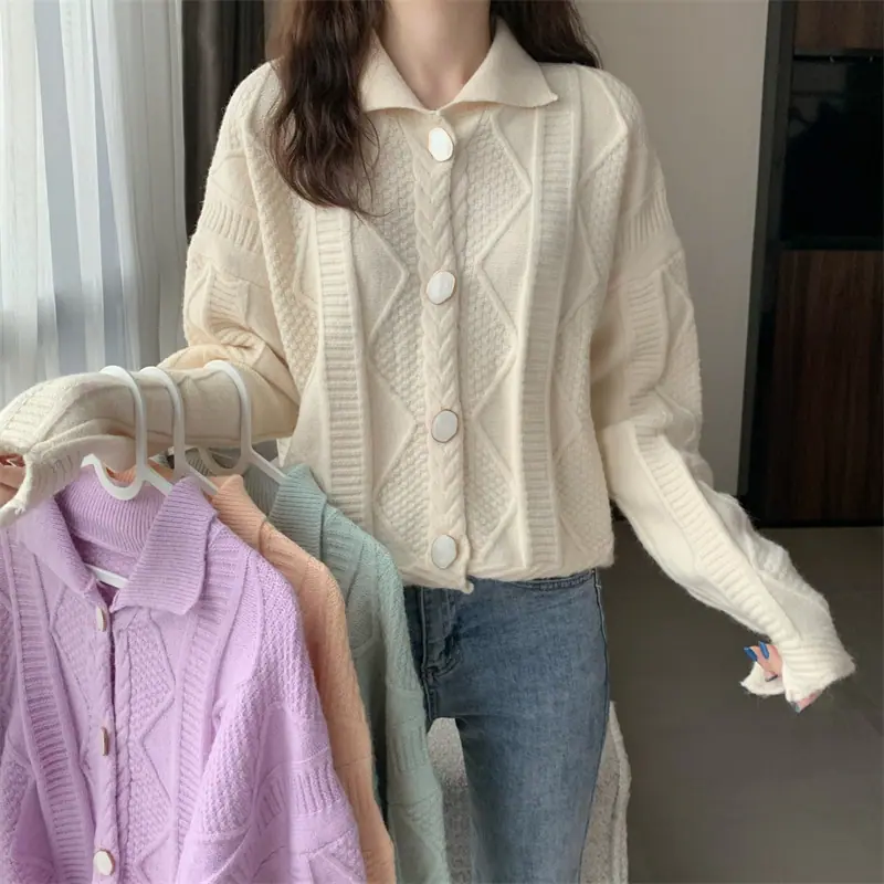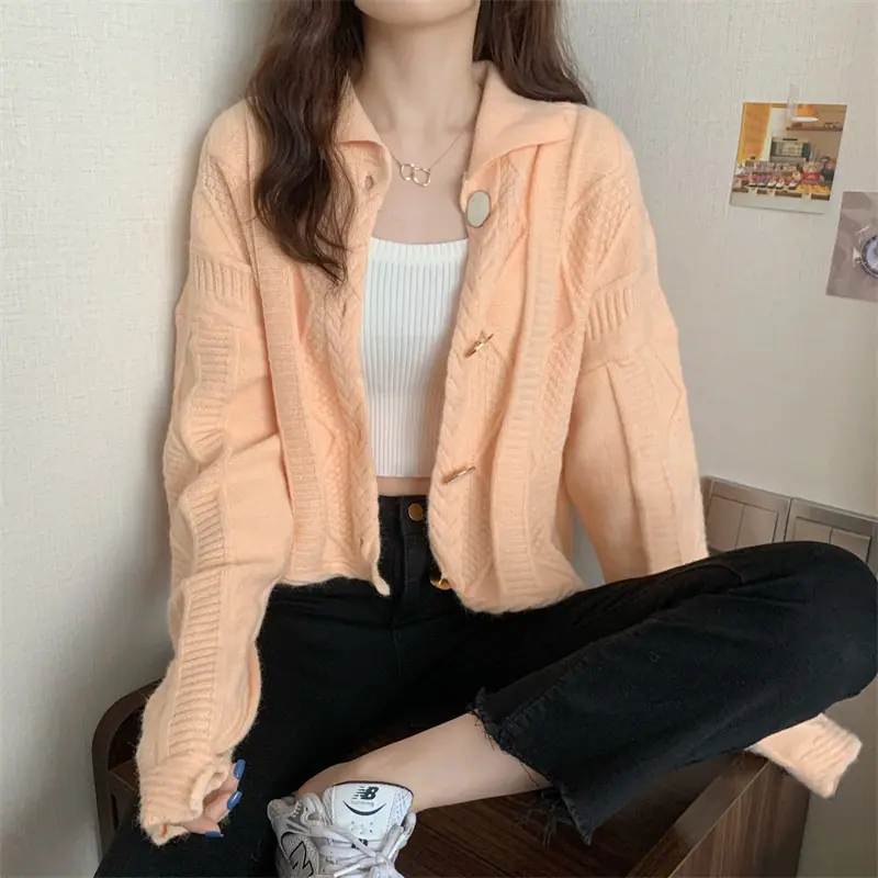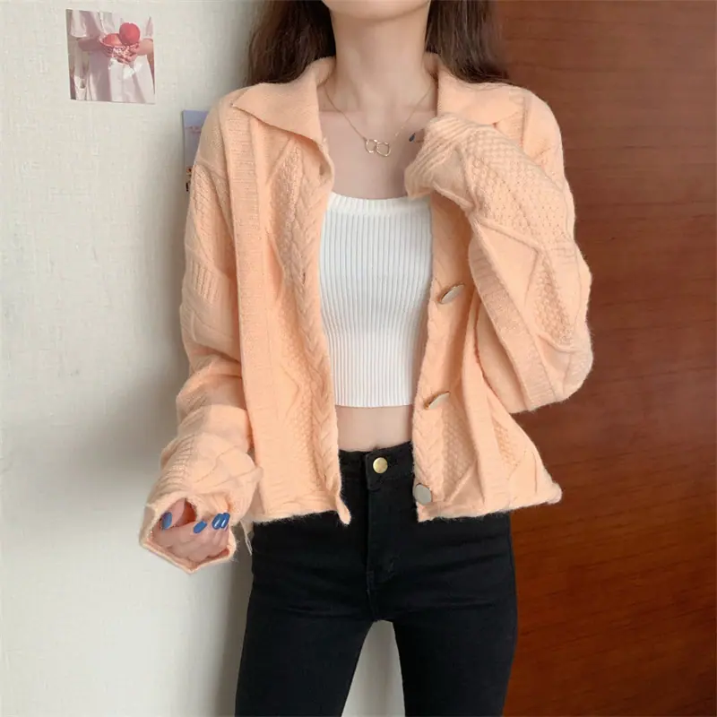 Cárdigan de Color Sólido Nuevo Suéter Suave Ceroso para Mujer con Estilo Coreano Cárdigan Tejido de Manga Larga Abrigo Exterior Chaqueta Suéter Exterior para Mujer
