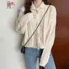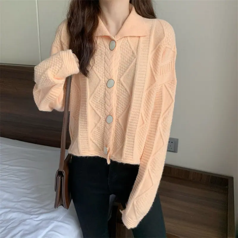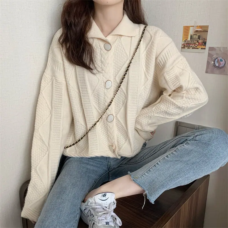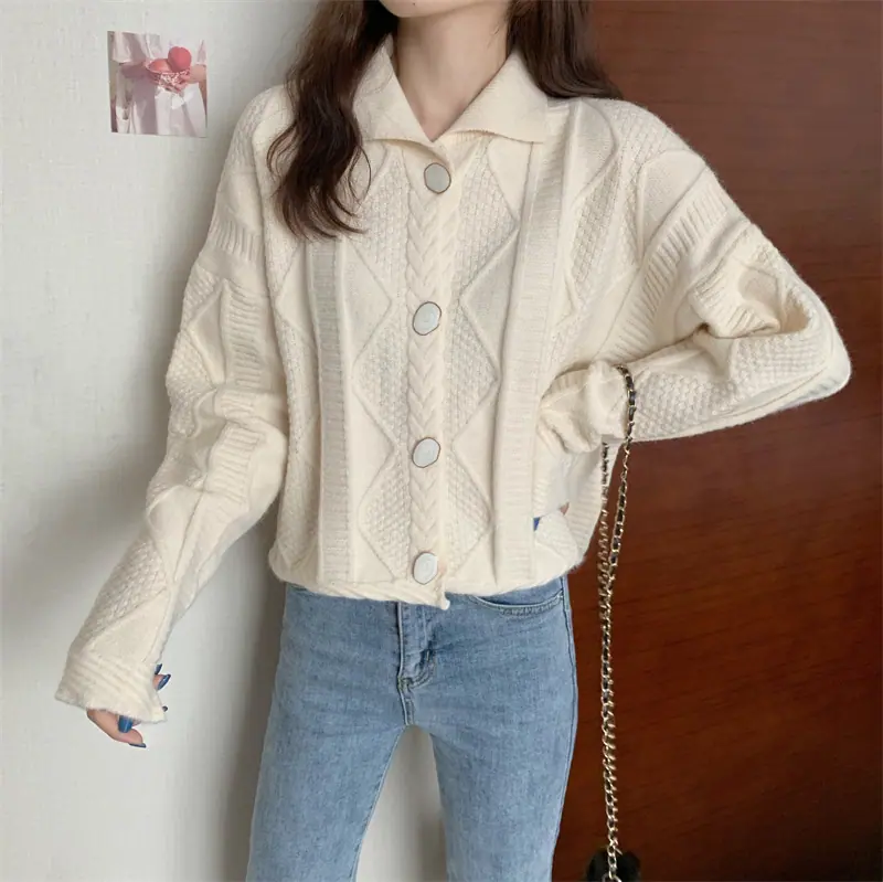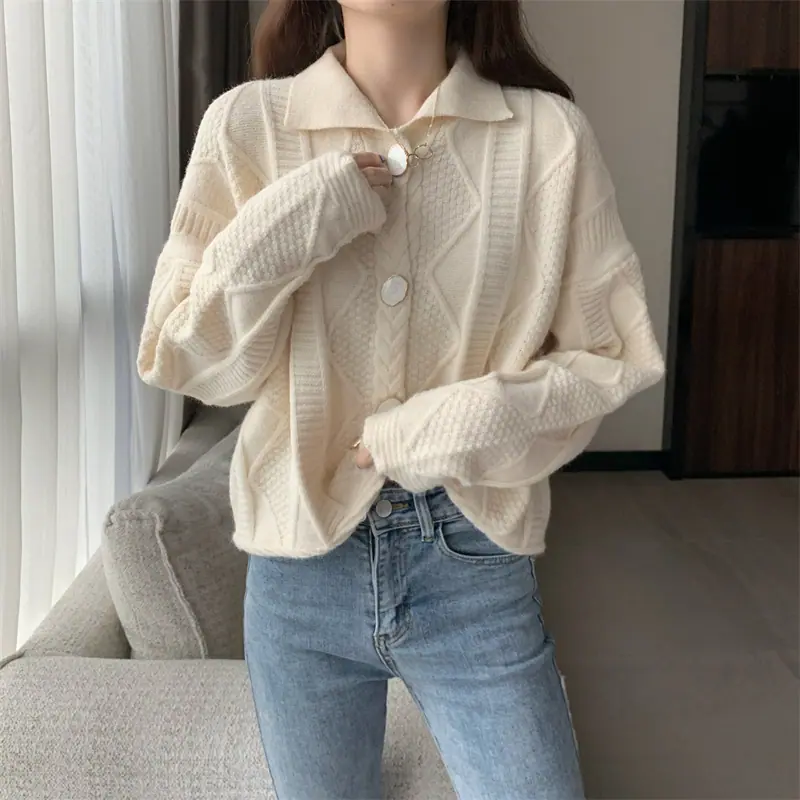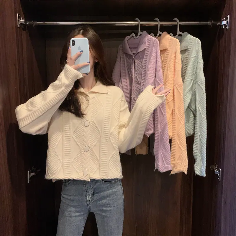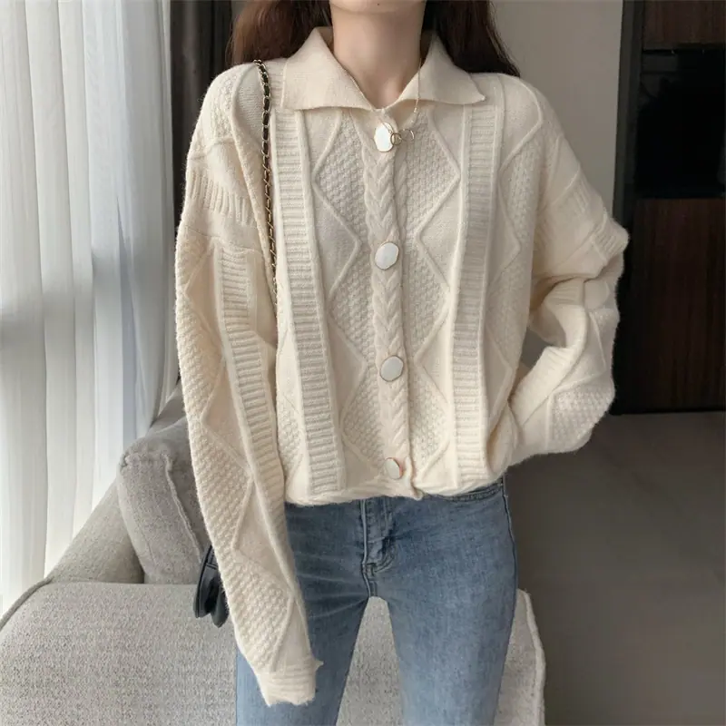 Cárdigan de Color Sólido Nuevo Suéter Suave Ceroso para Mujer con Estilo Coreano Cárdigan Tejido de Manga Larga Abrigo Exterior Chaqueta Suéter Exterior para Mujer