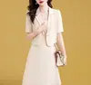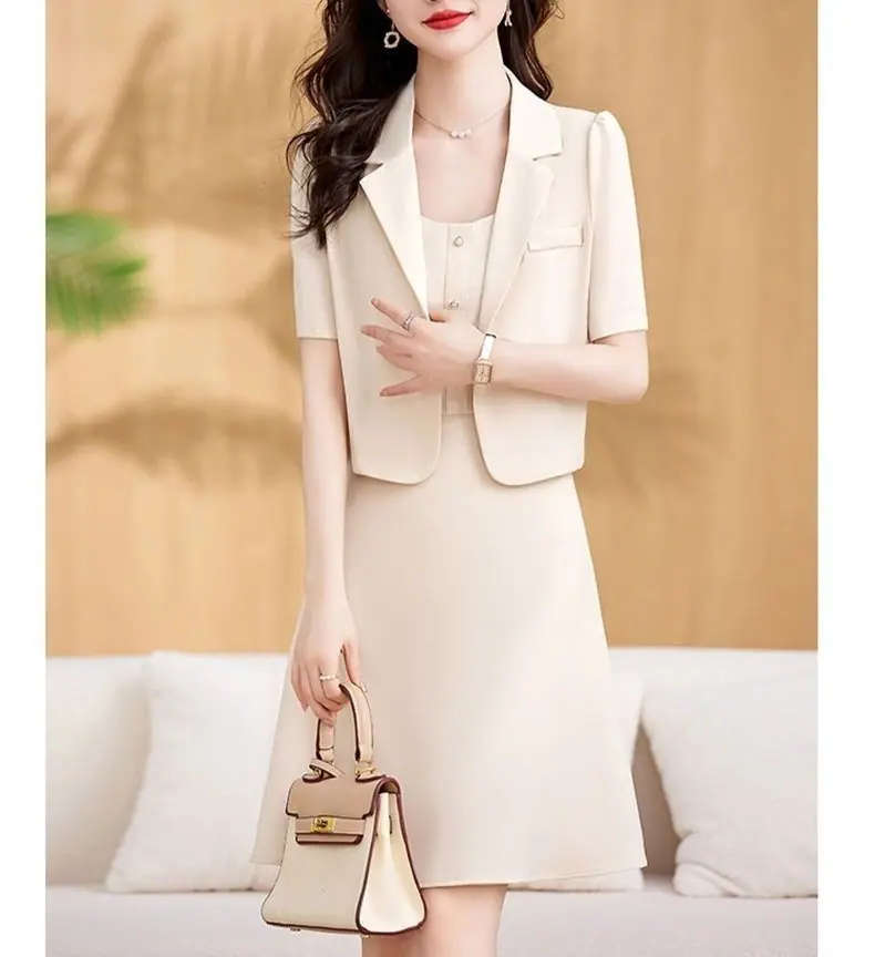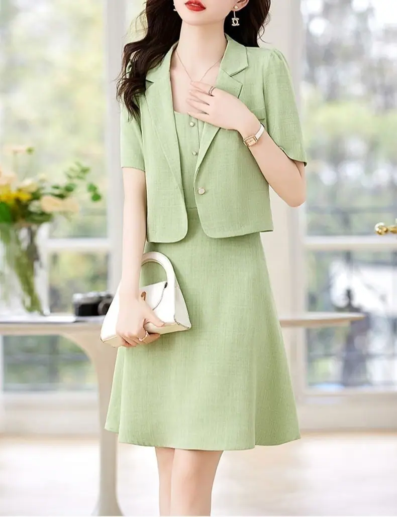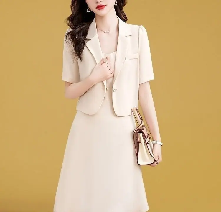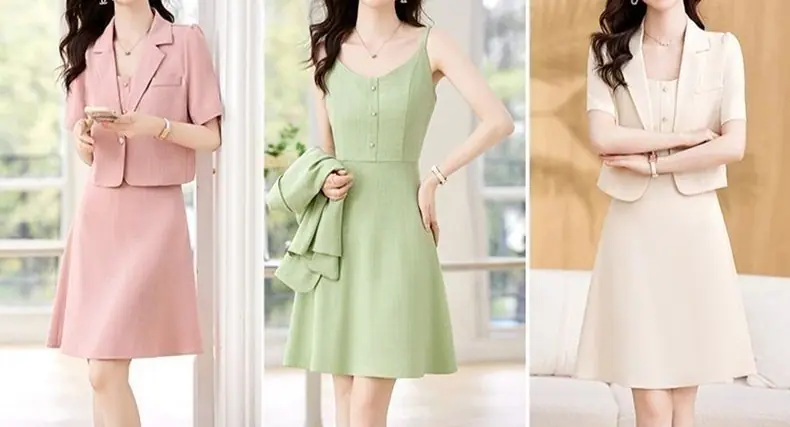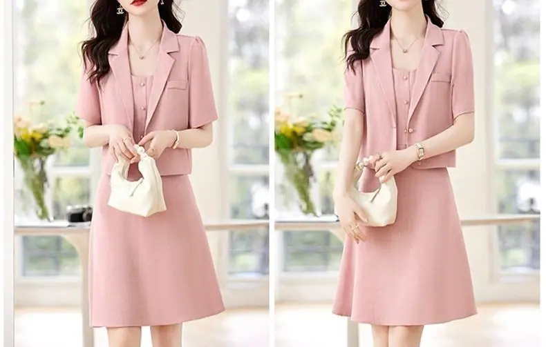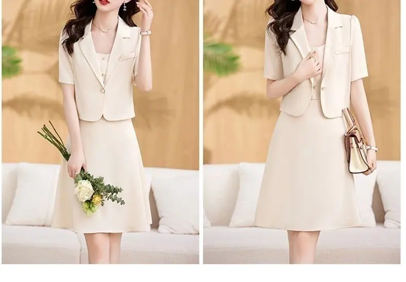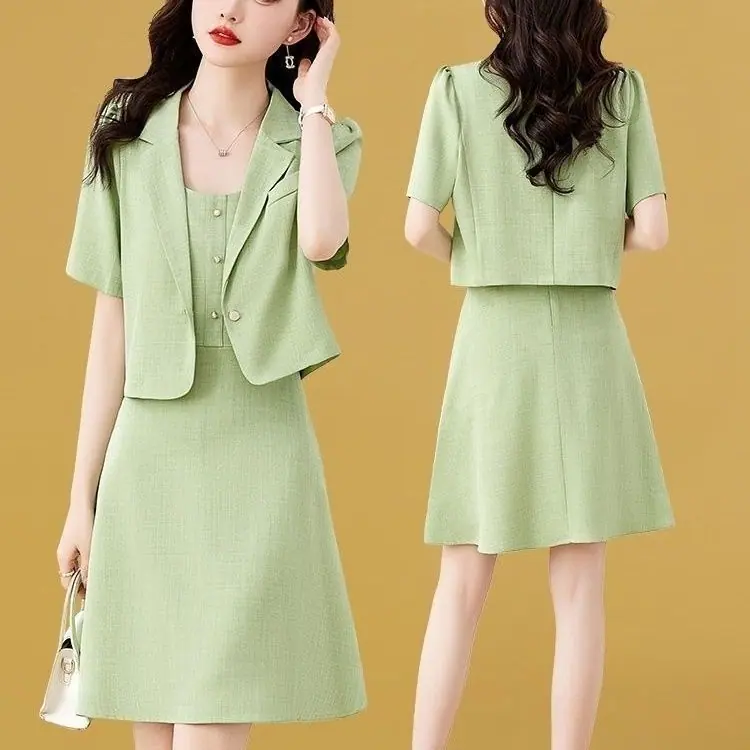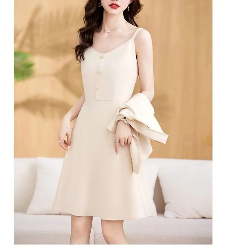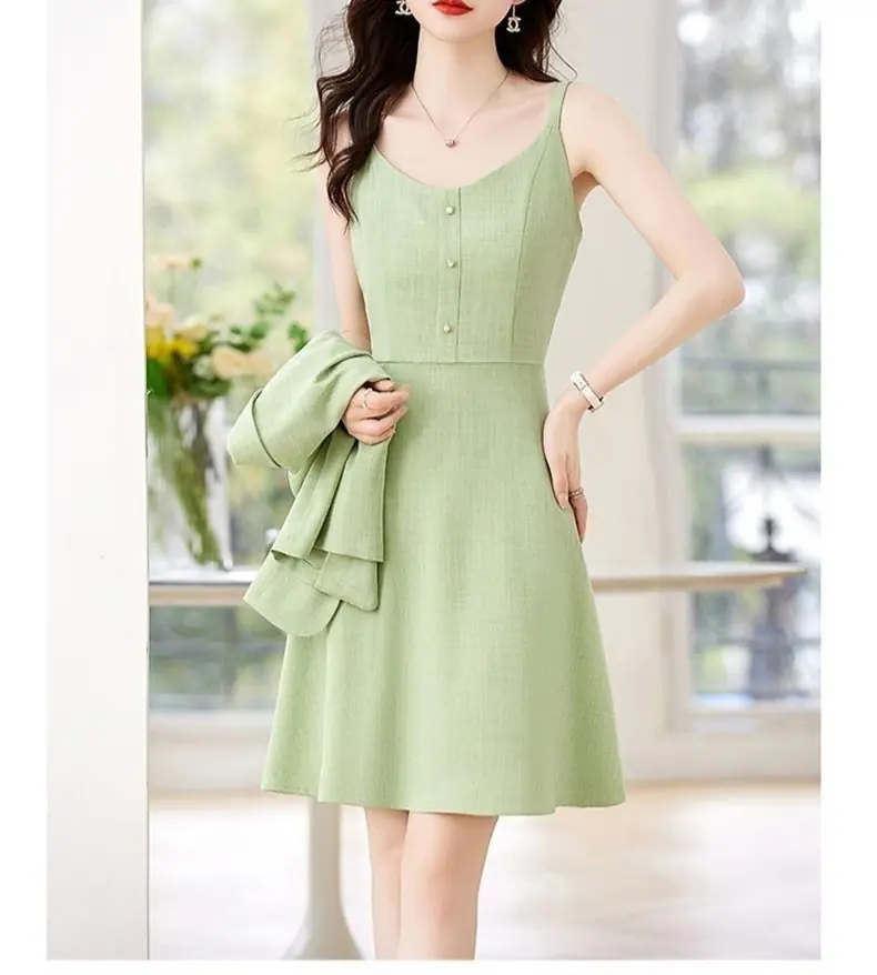 Vestido Nuevo para Viajeras Elegante para Damas Mujeres Nuevo Verano Largo Medio Traje Falda con Tirantes Conjunto de Dos Piezas