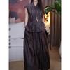 Nuevo Conjunto de Falda de Moda Chinoiserie para Mujer Verano Nuevo Color Puro Top Asimétrico + Falda Sencilla 8340