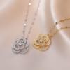Colar para Mulheres, Novo Colar de Aço Titânio Flor Rosa Diamante Completo Floral Elegante Moda Pingente Colar Clavícula