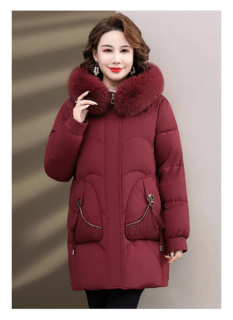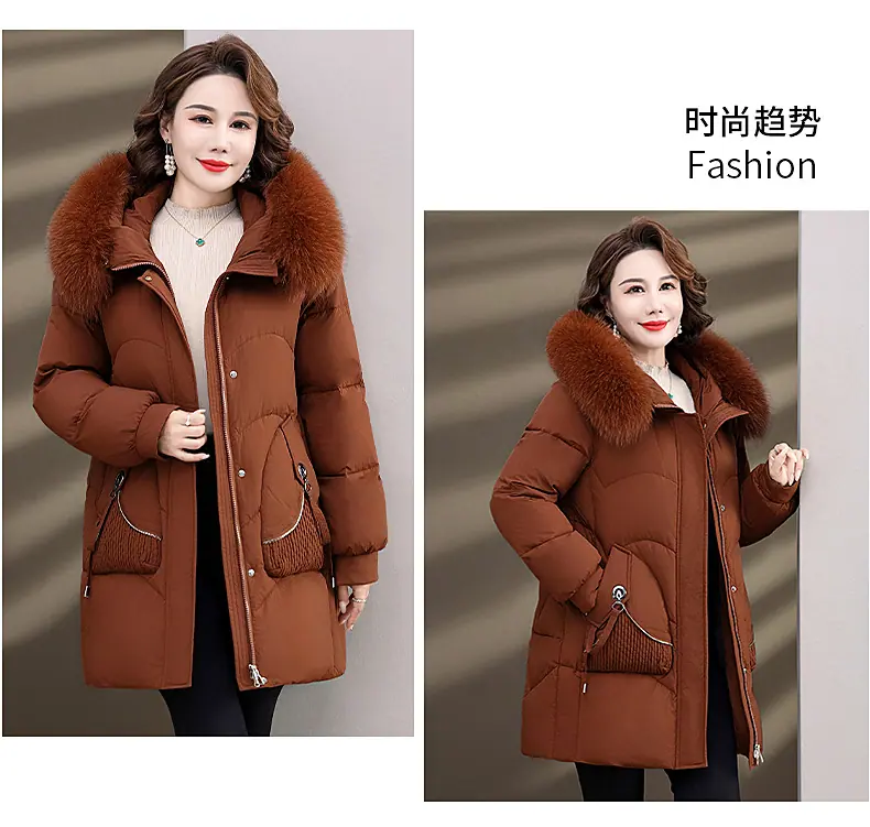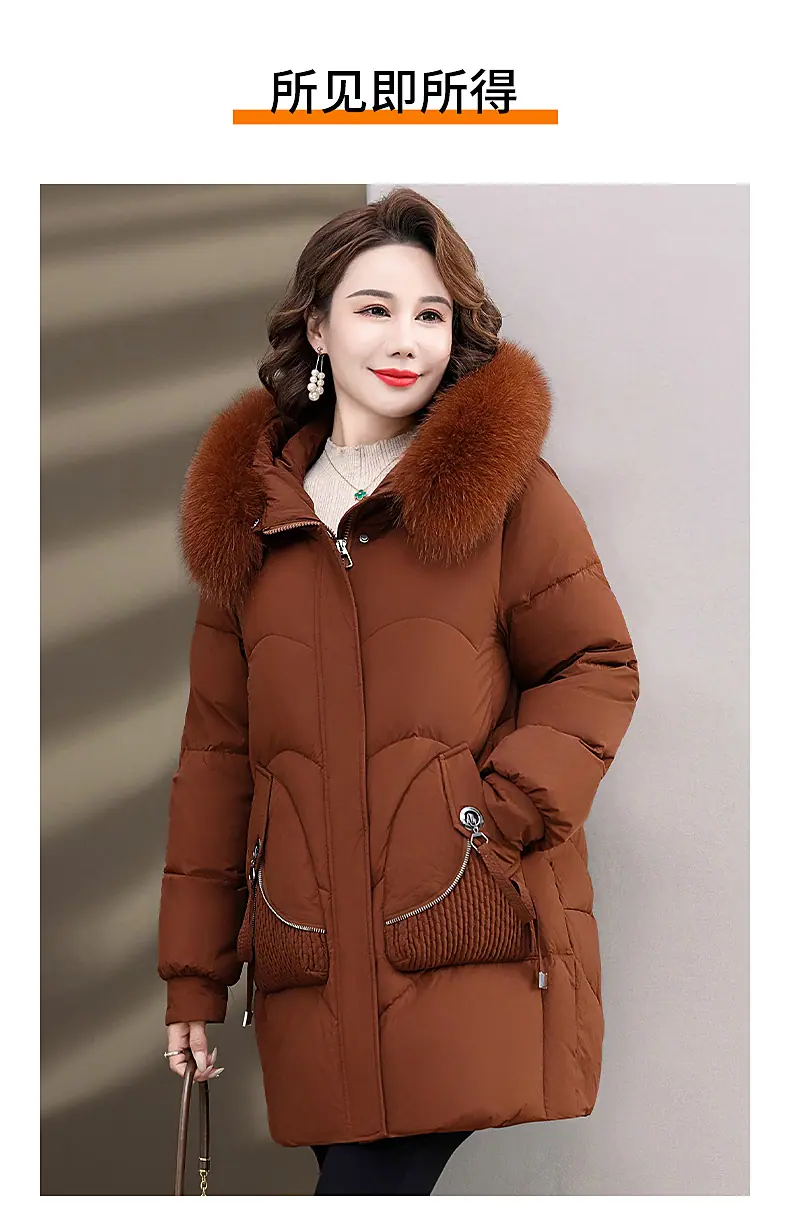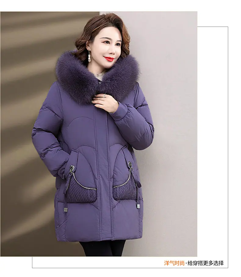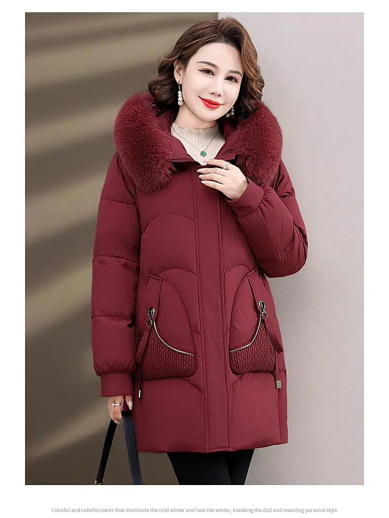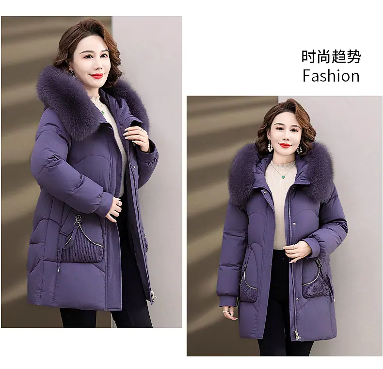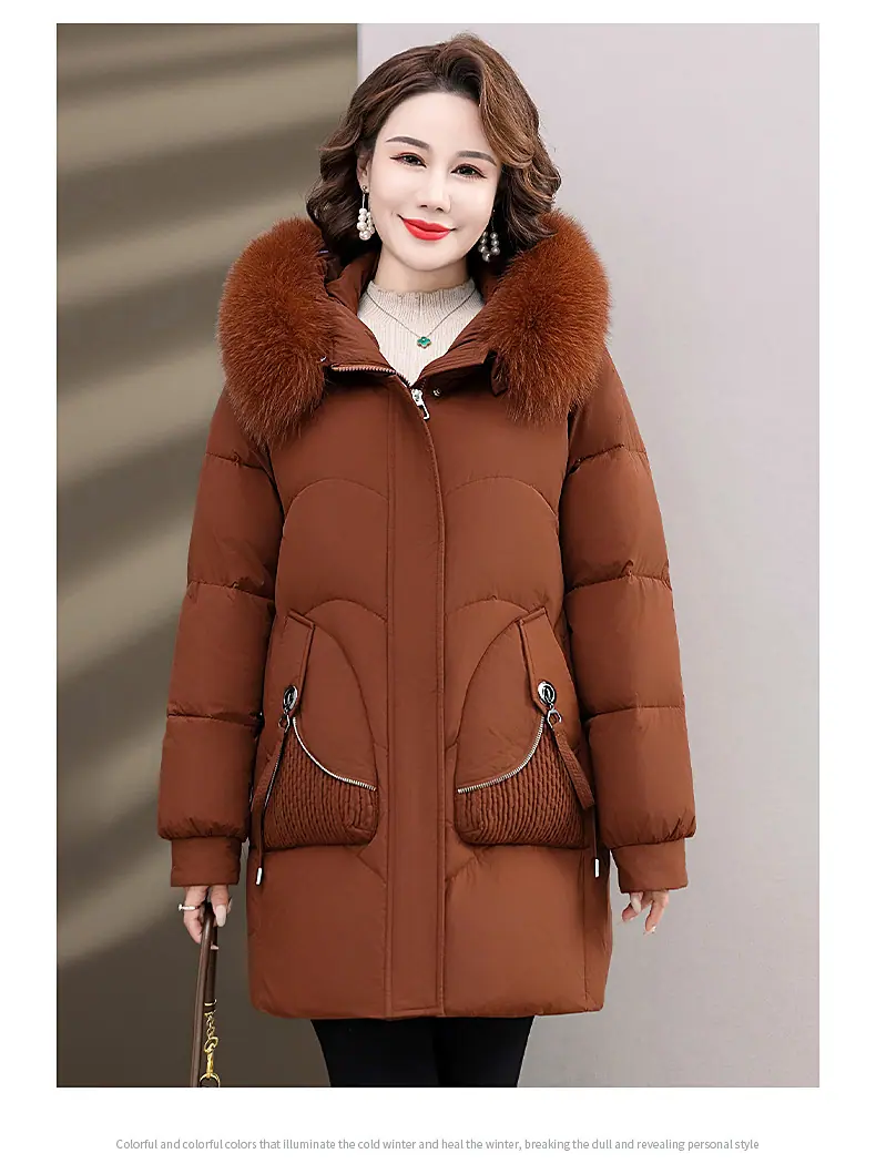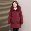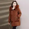 Chamarra de plumón de pato blanco para mujeres de mediana edad y mayores 2025 nuevo invierno largo medio ropa de madre abrigo grueso cálido con cuello de piel